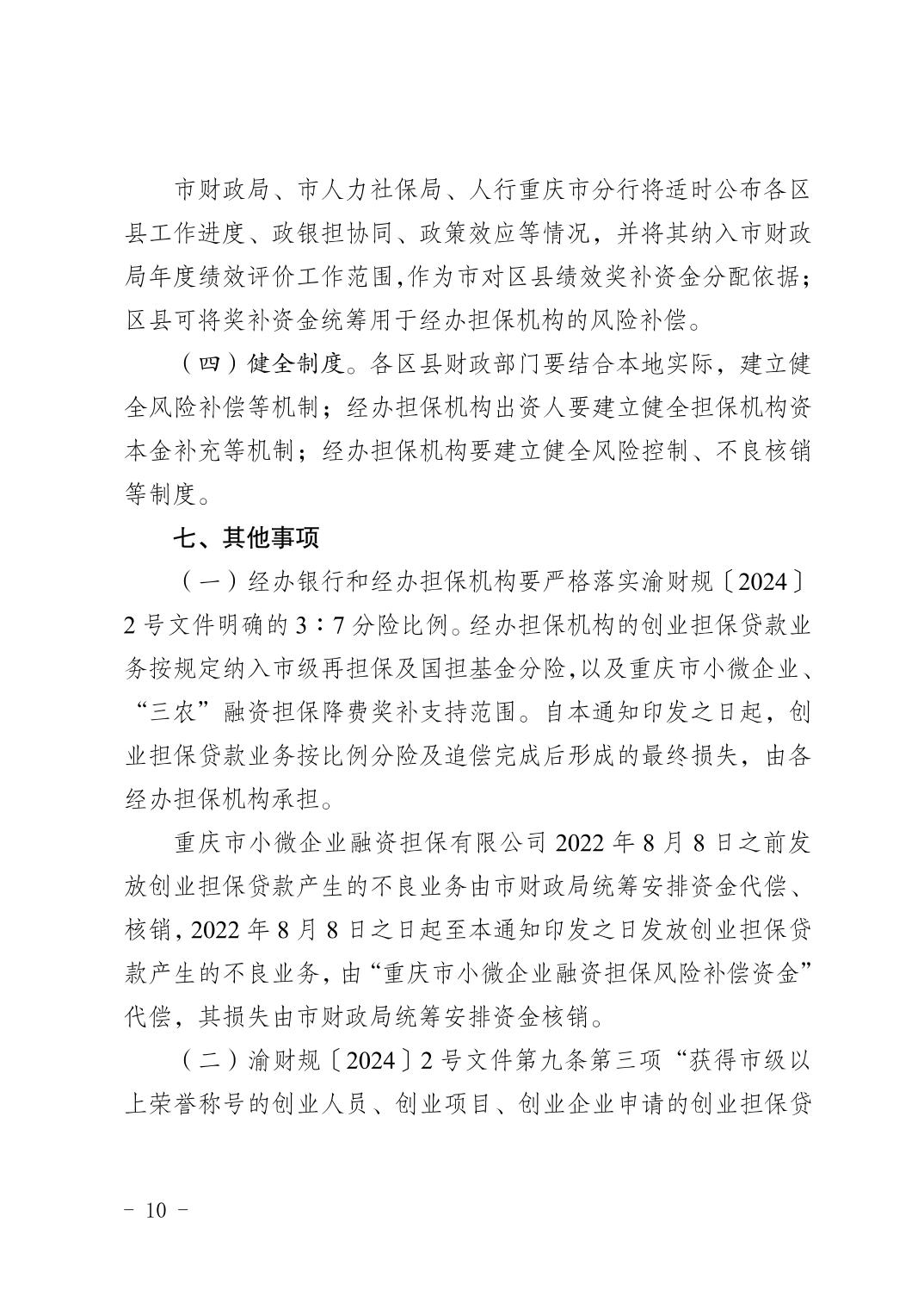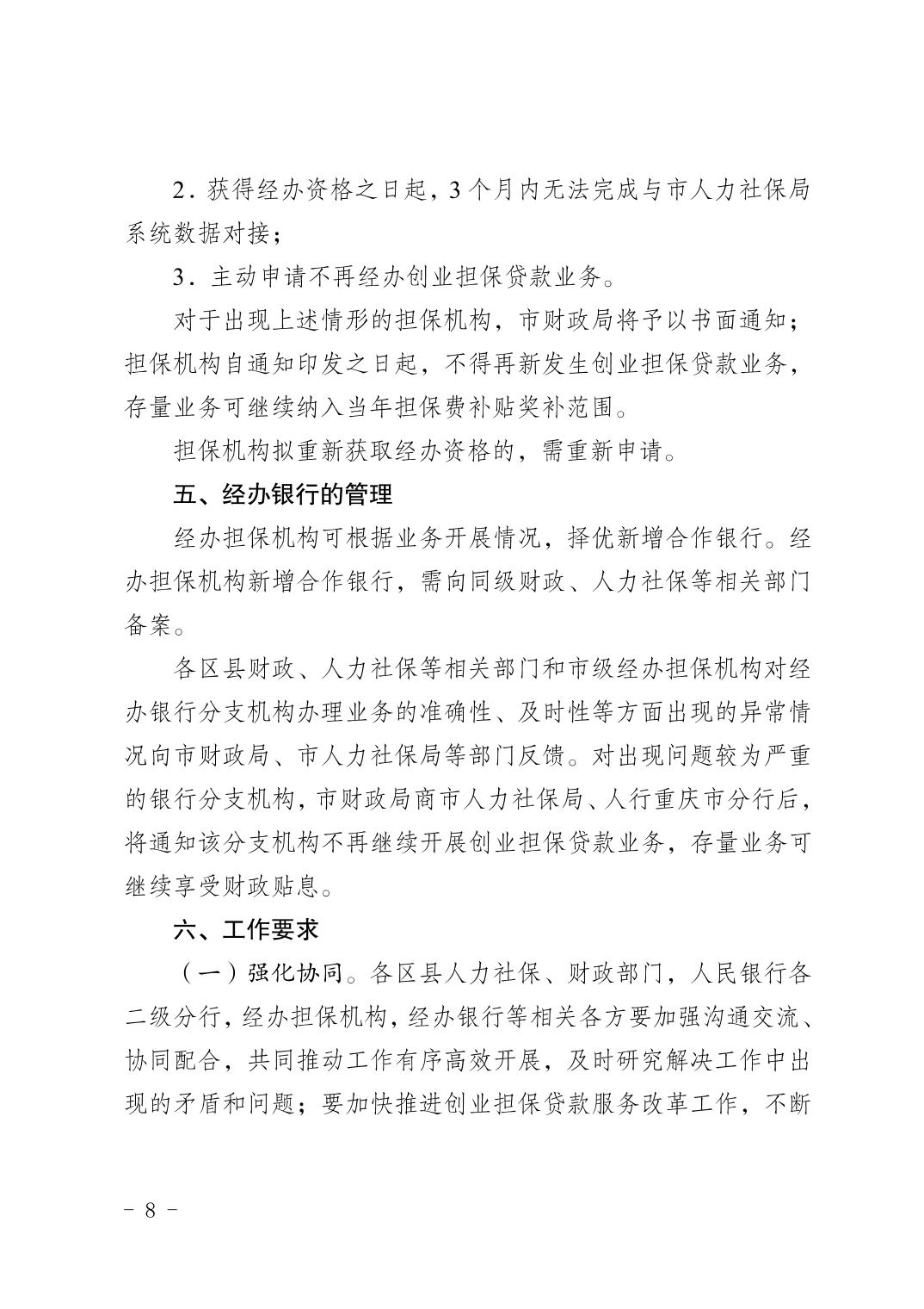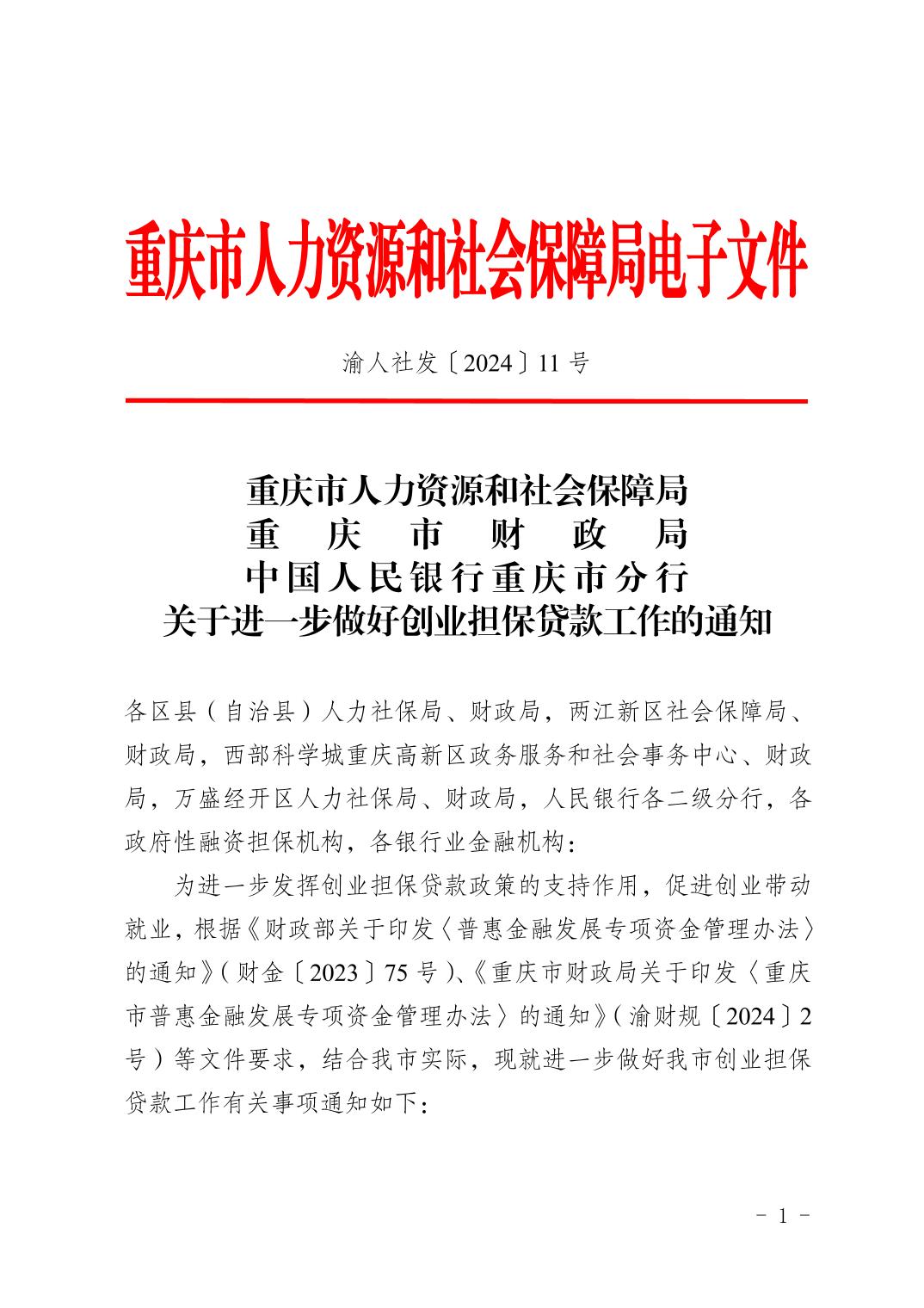 重慶市人力資源和社會保障局+重慶市財政局+中國人民銀行重慶市分行關于進一步做好創業擔保貸款工作的通知