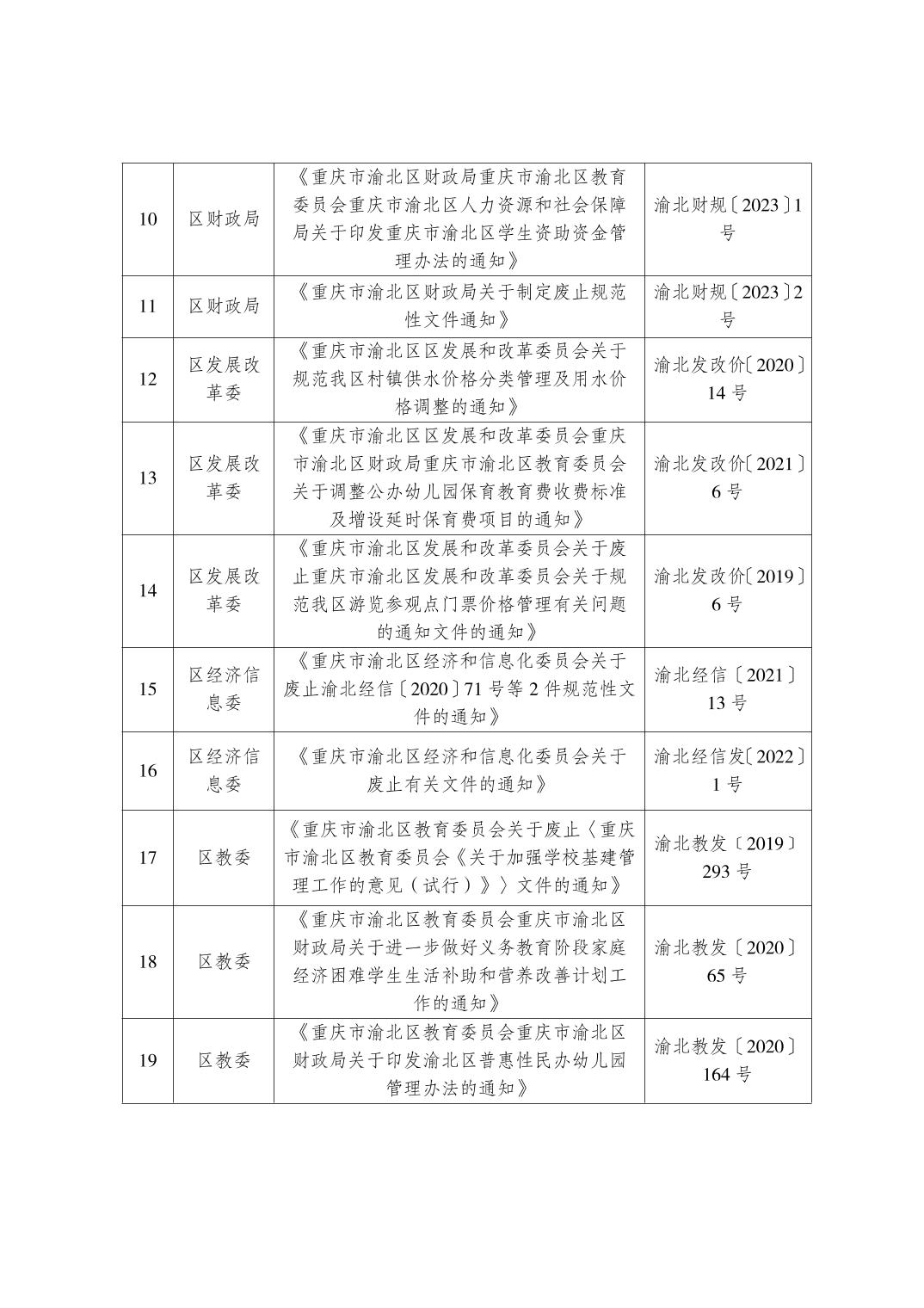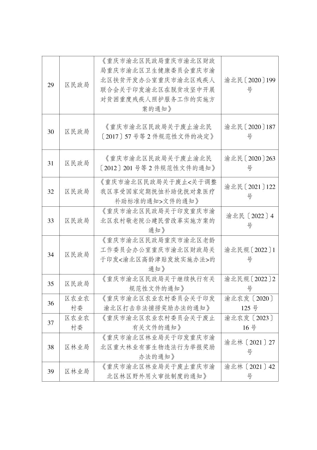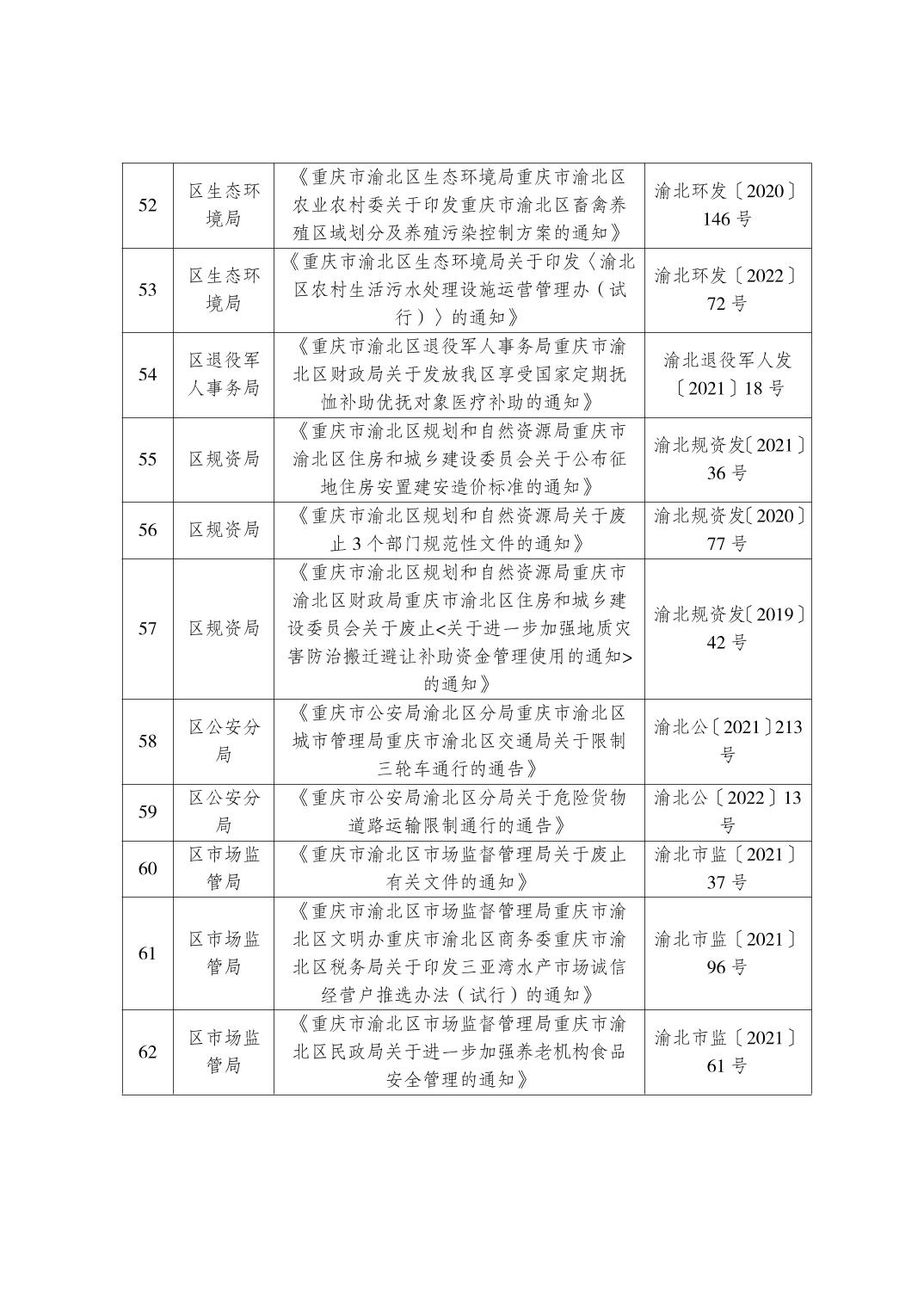 渝北區(qū)現(xiàn)行有效的部門規(guī)范性文件目錄