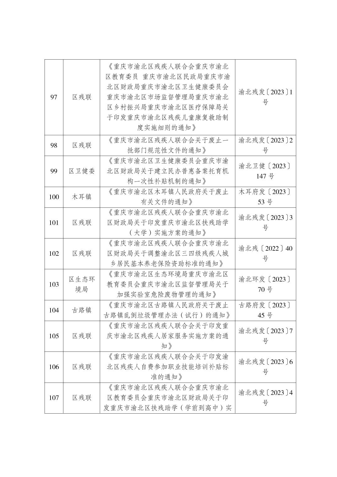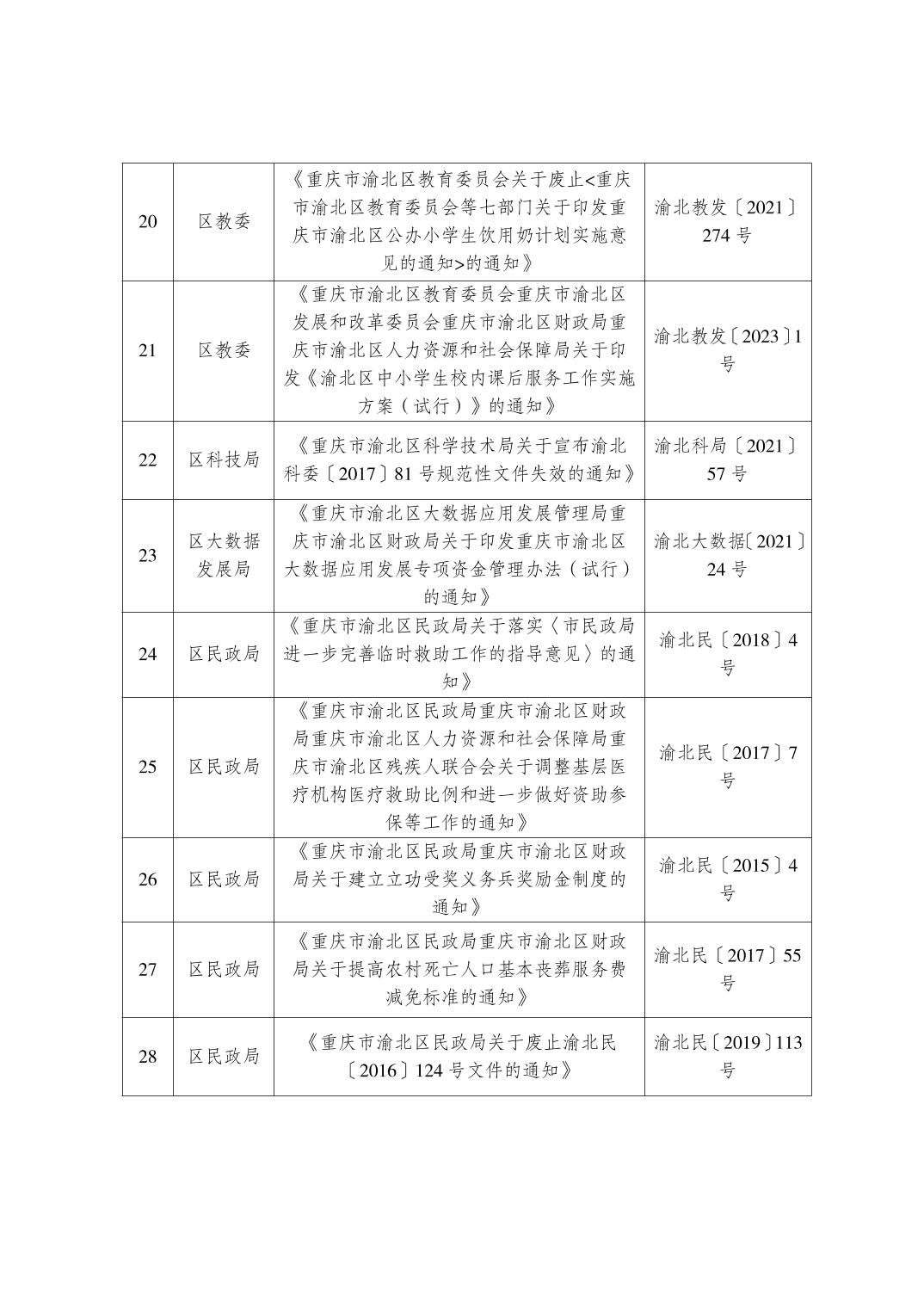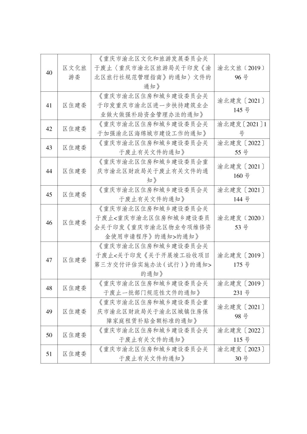 渝北區(qū)現(xiàn)行有效的部門規(guī)范性文件目錄