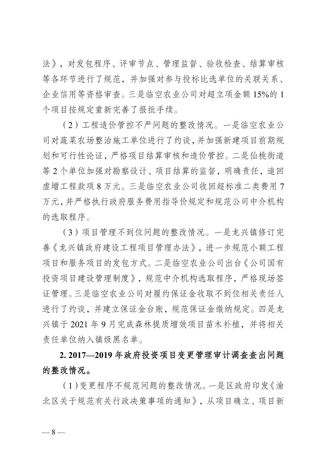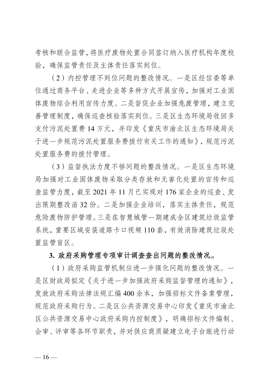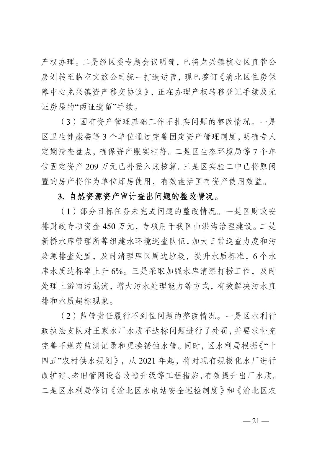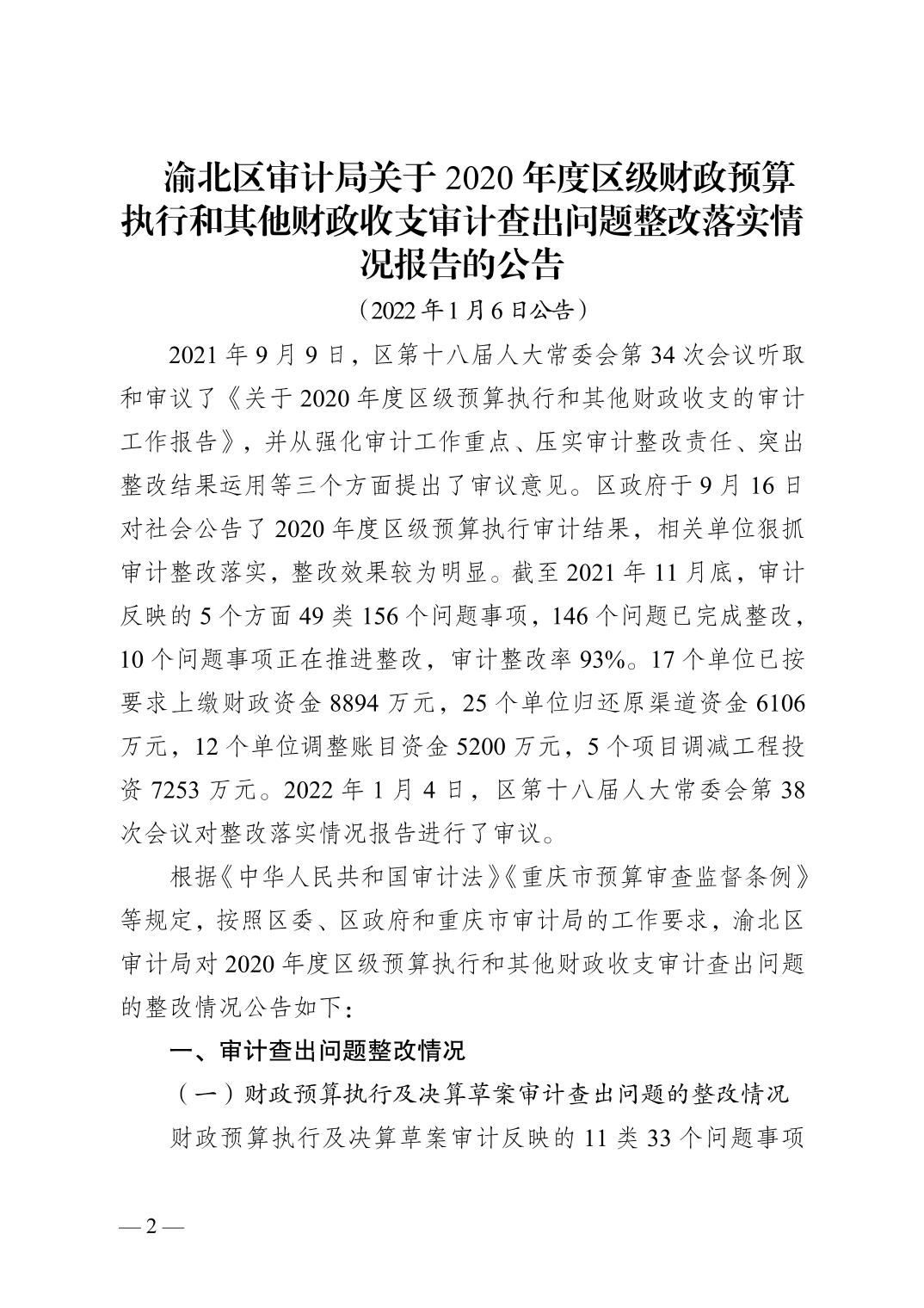渝北區(qū)審計局關于2020年度區(qū)級財政預算執(zhí)行和其他財政收支審計查出問題整改落實情況的公告