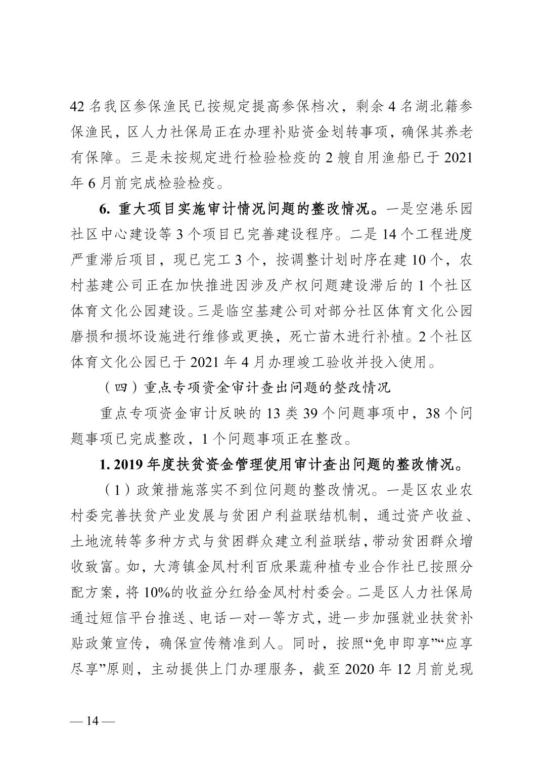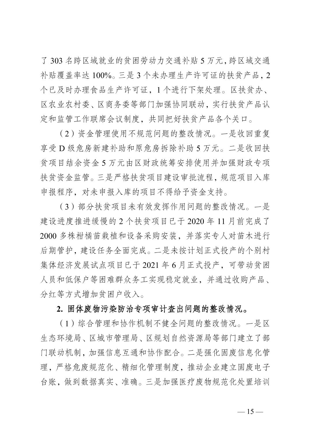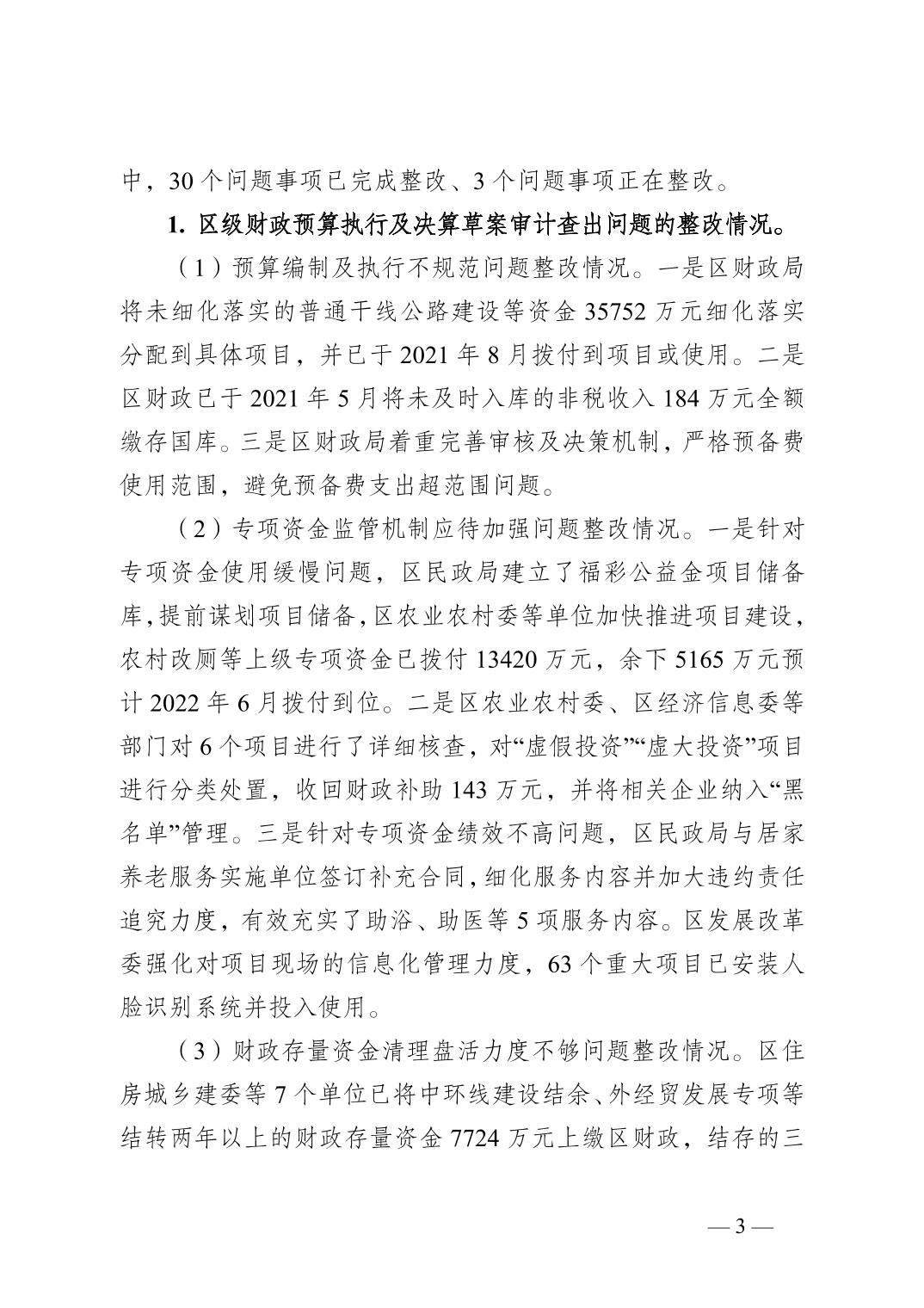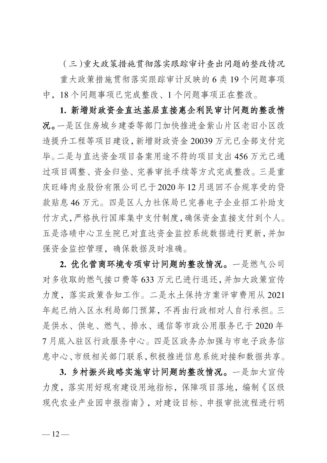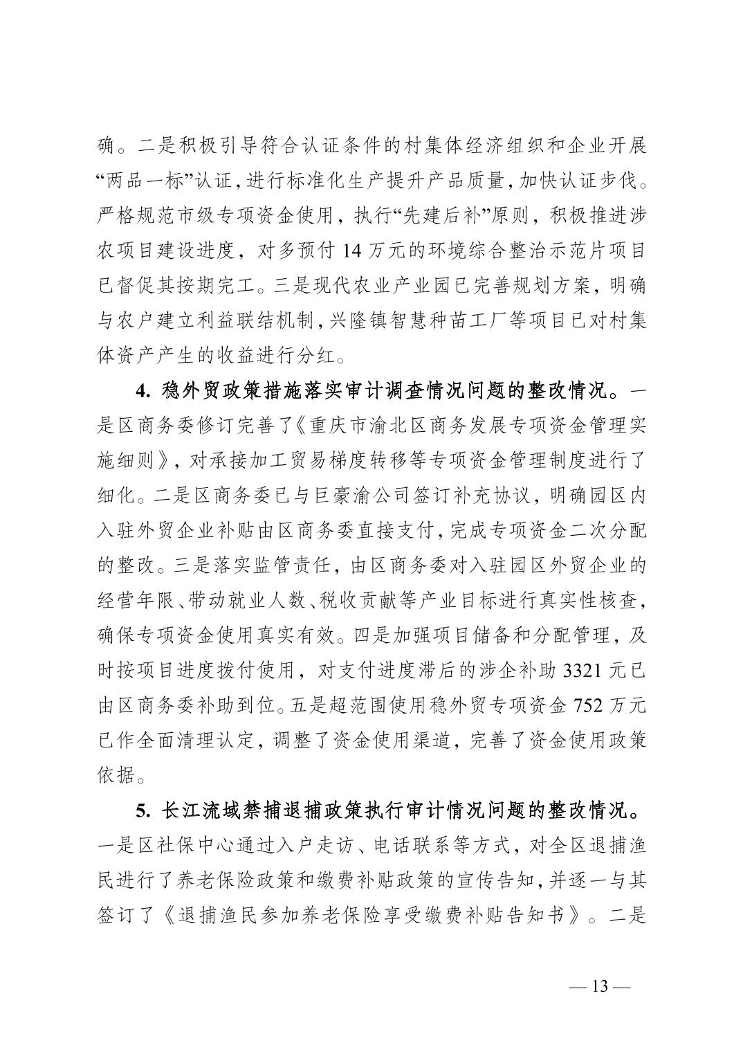 渝北區(qū)審計局關于2020年度區(qū)級財政預算執(zhí)行和其他財政收支審計查出問題整改落實情況的公告