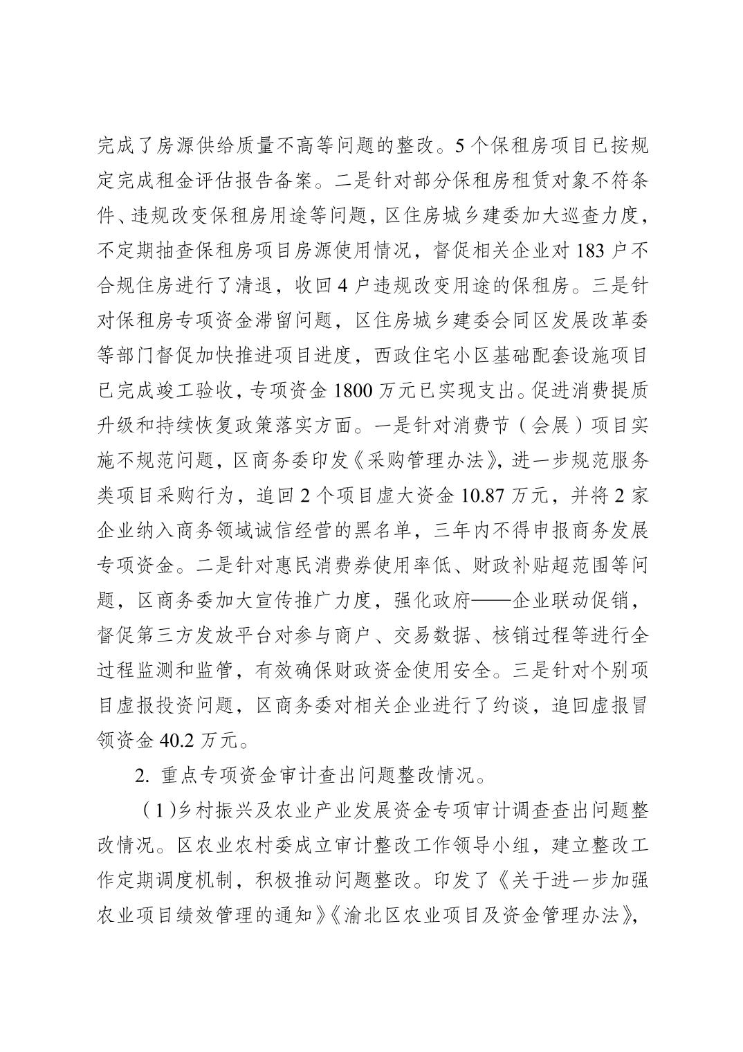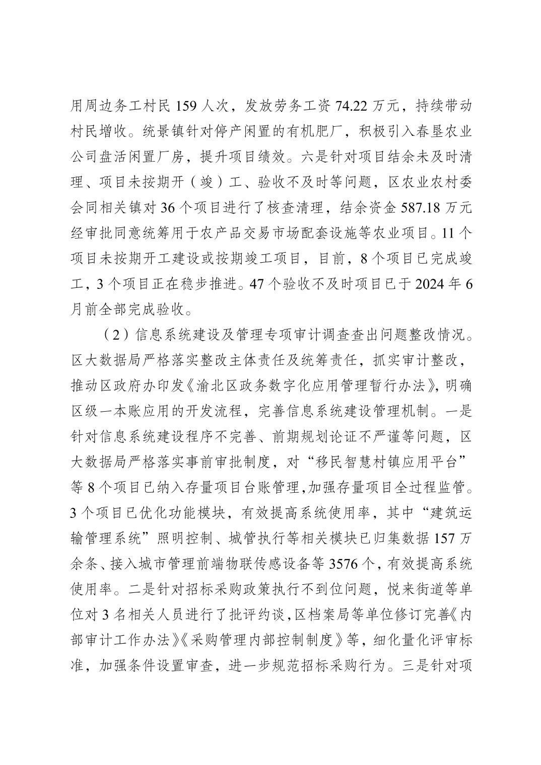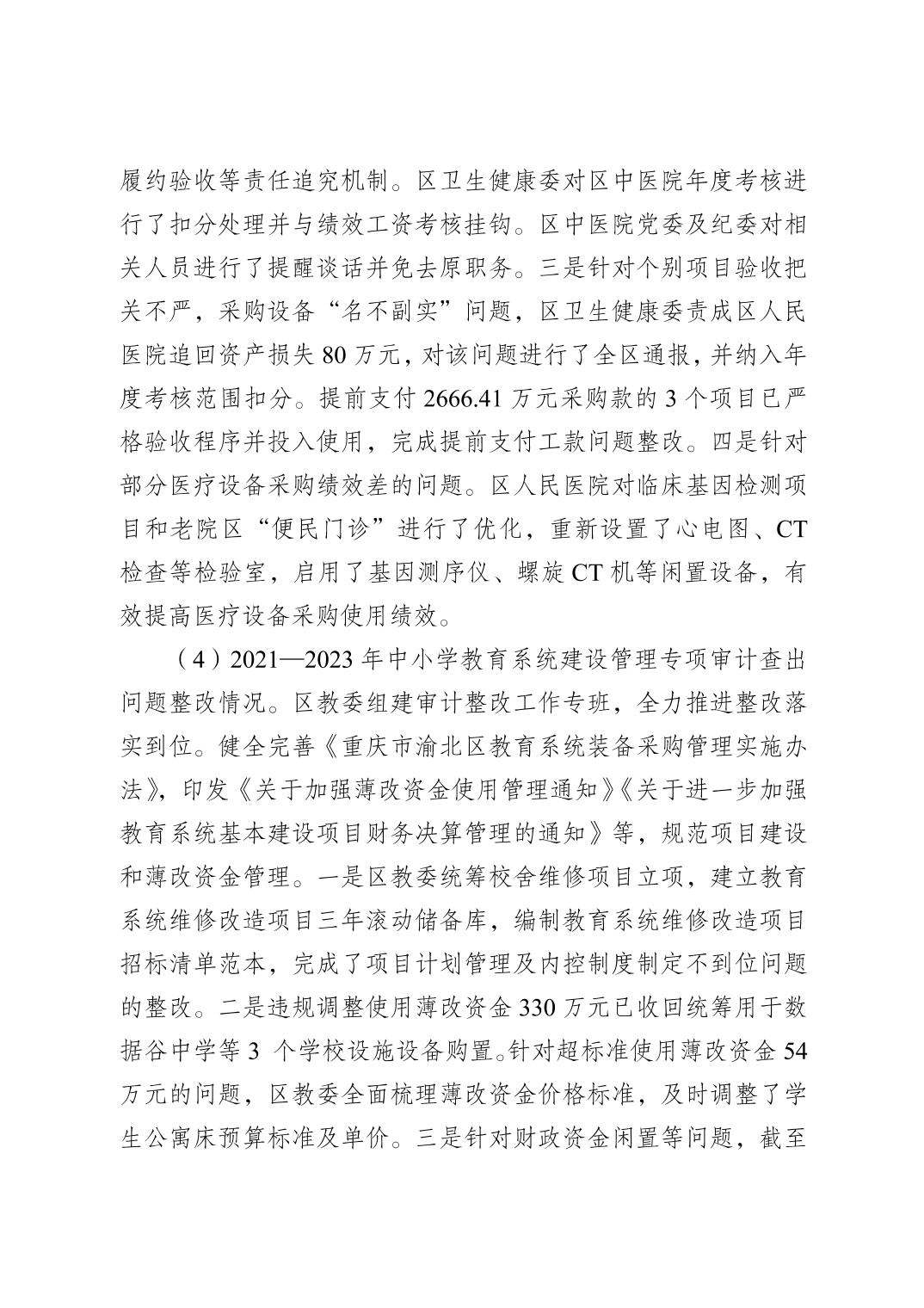 重慶市渝北區審計局關于2023年度區級預算執行和其他財政收支審計查出問題整改落實情況的公告