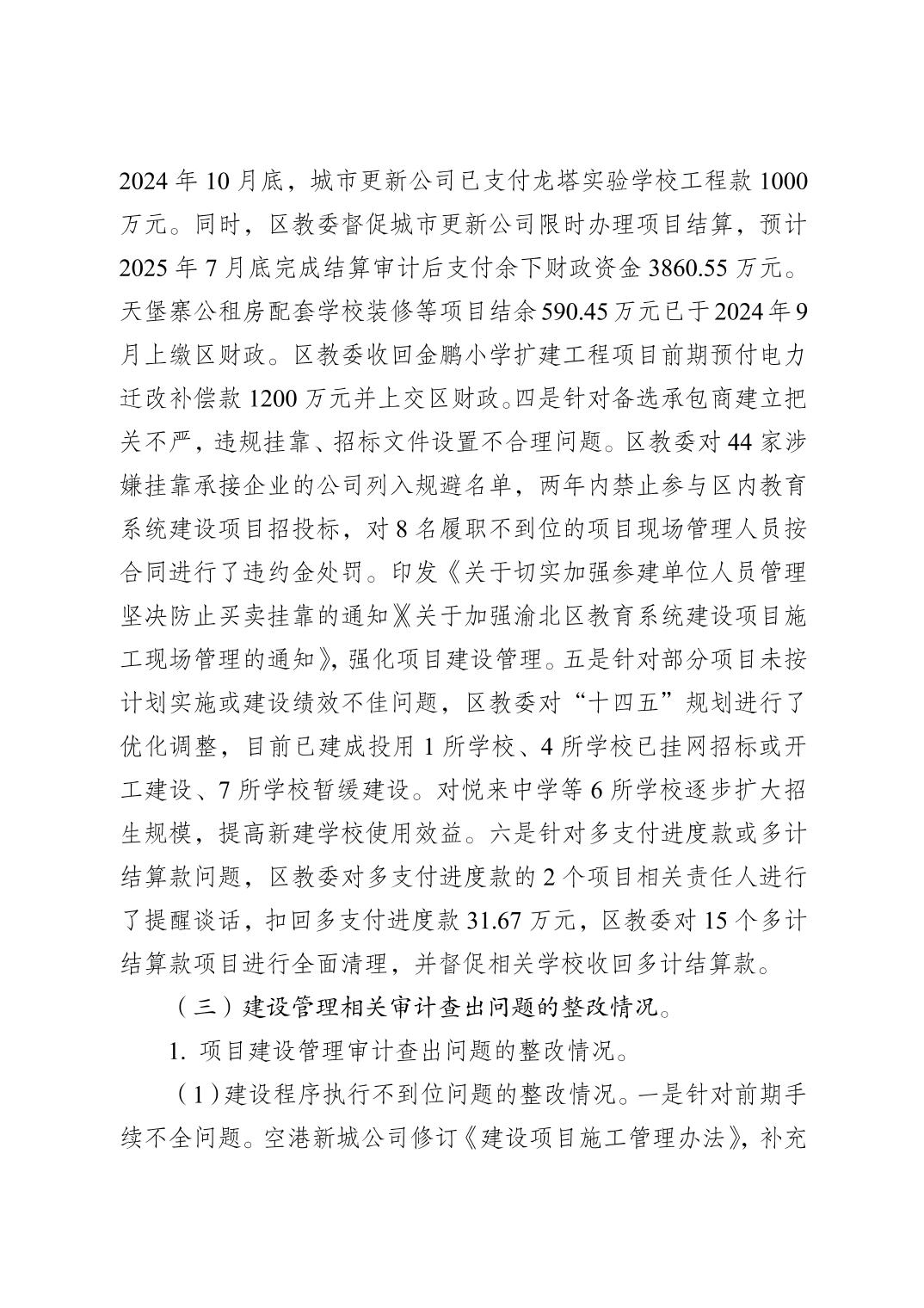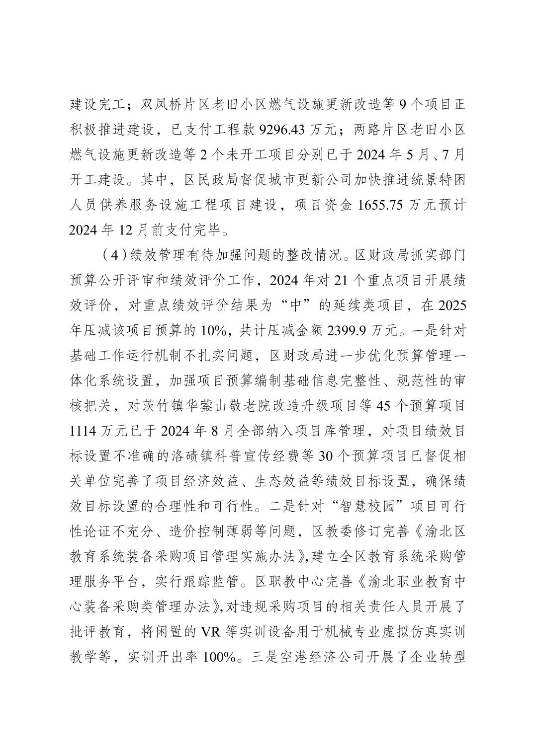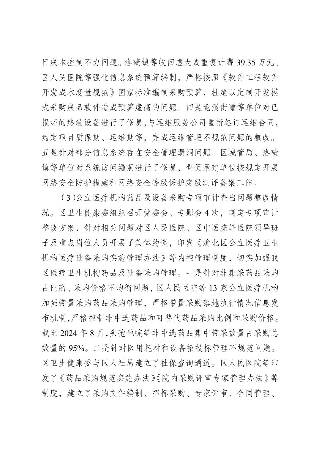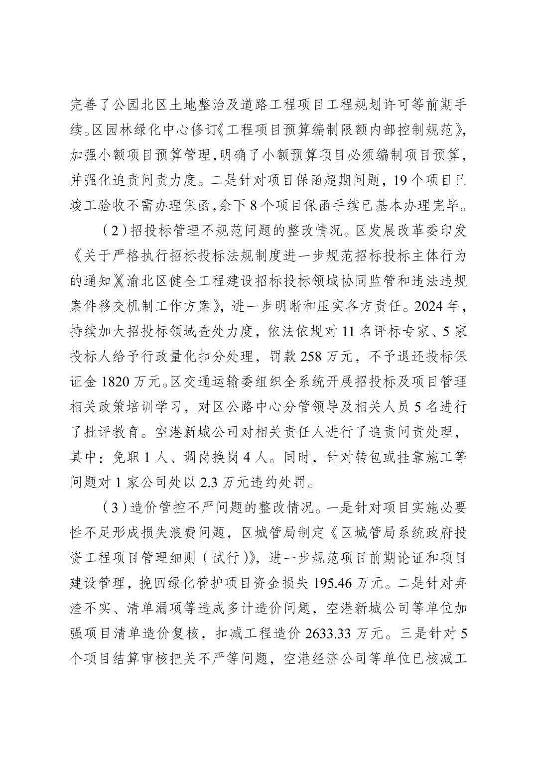 重慶市渝北區審計局關于2023年度區級預算執行和其他財政收支審計查出問題整改落實情況的公告