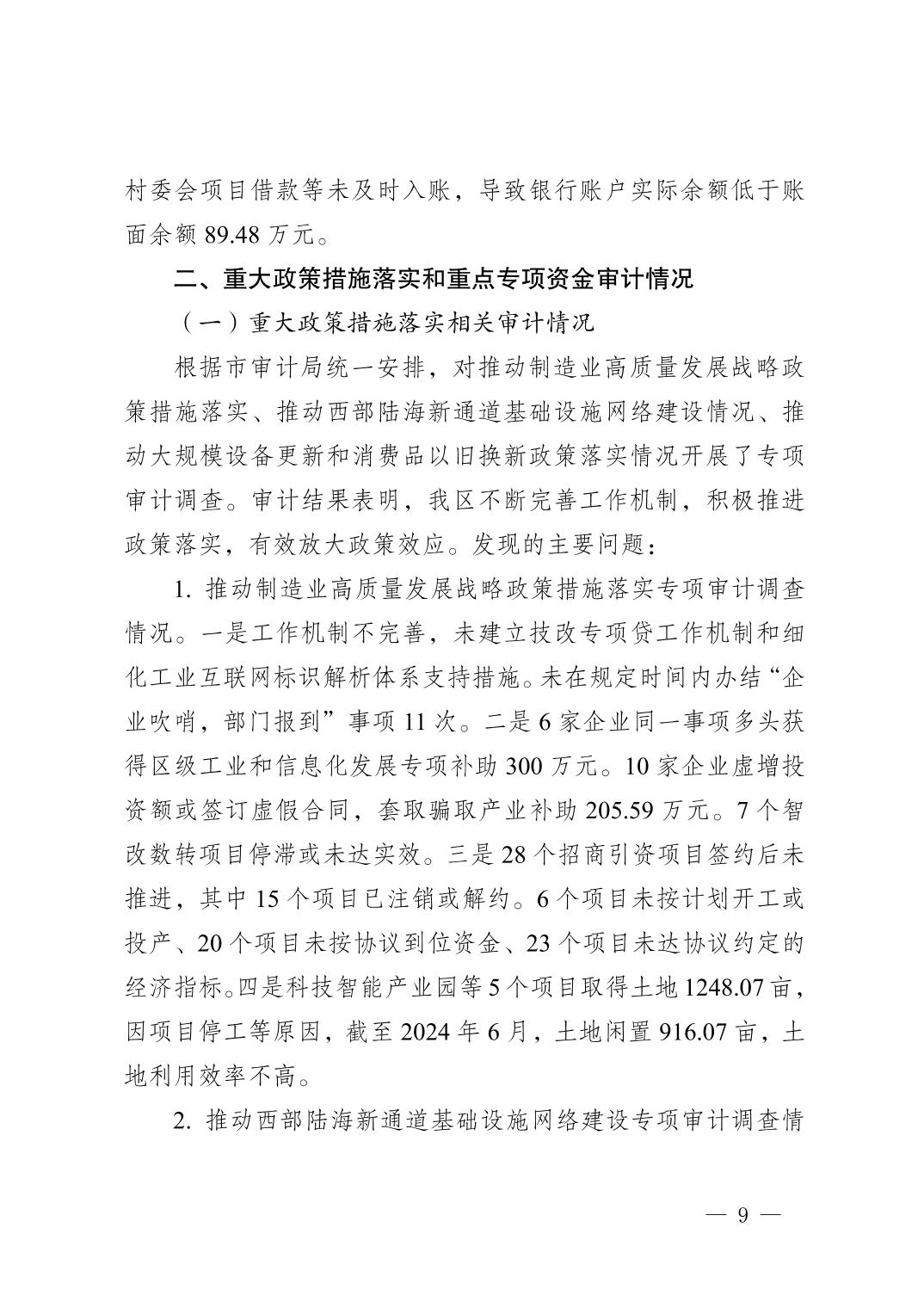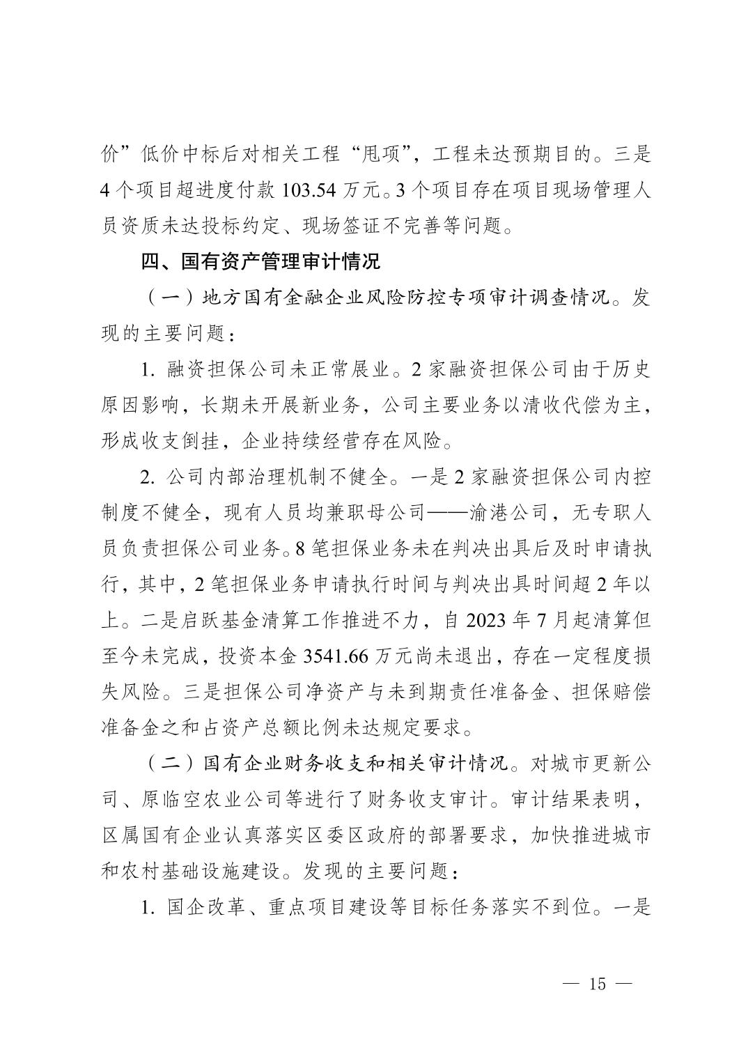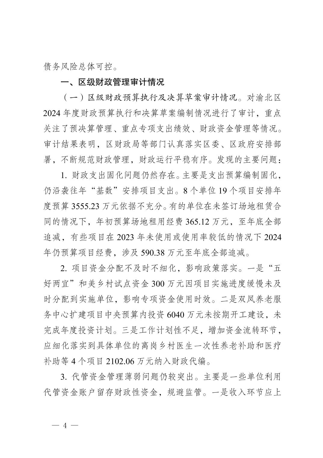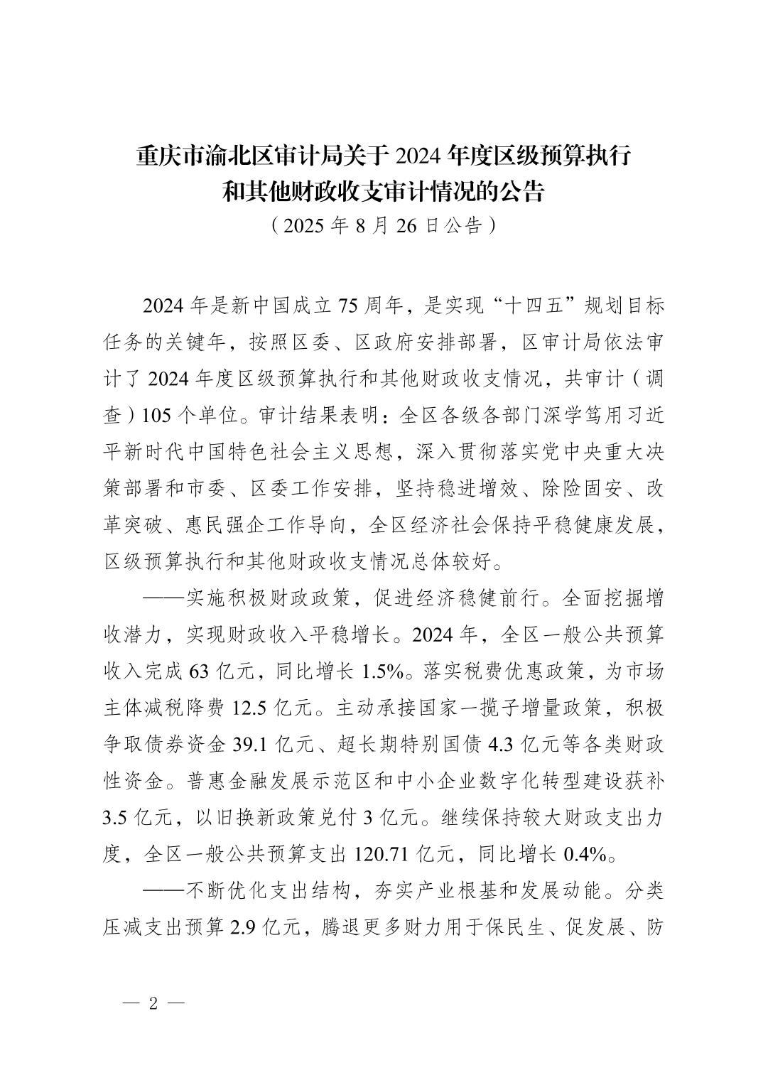 重慶市渝北區(qū)審計局關于2024年度區(qū)級預算執(zhí)行和其他財政收支審計情況的公告