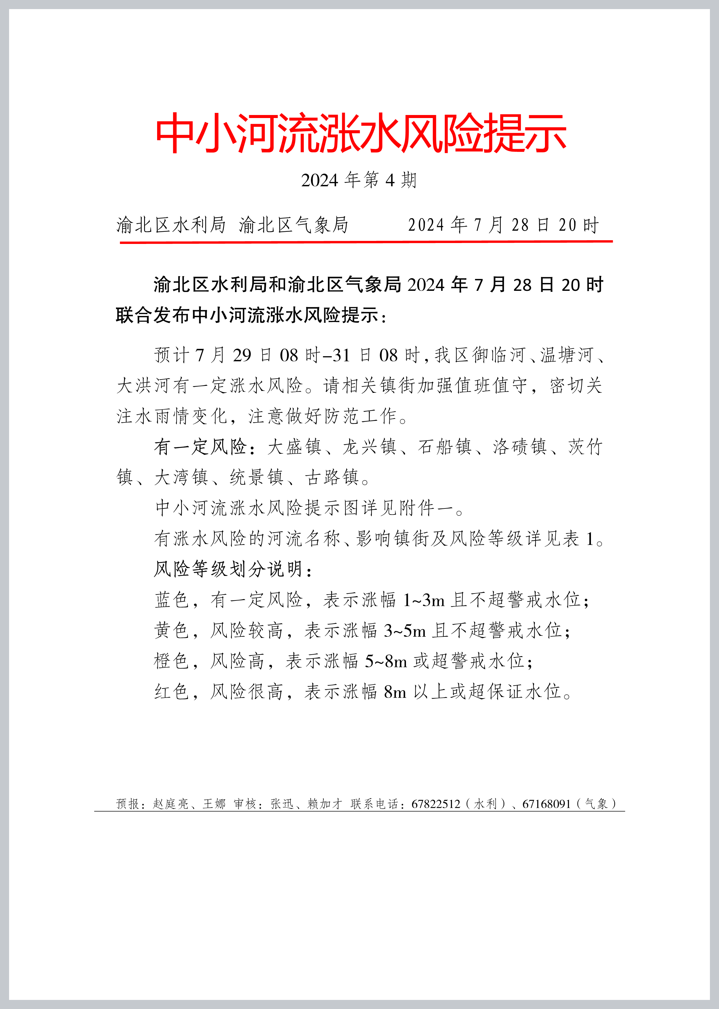 中小河流漲水風險提示(2024年第4期)