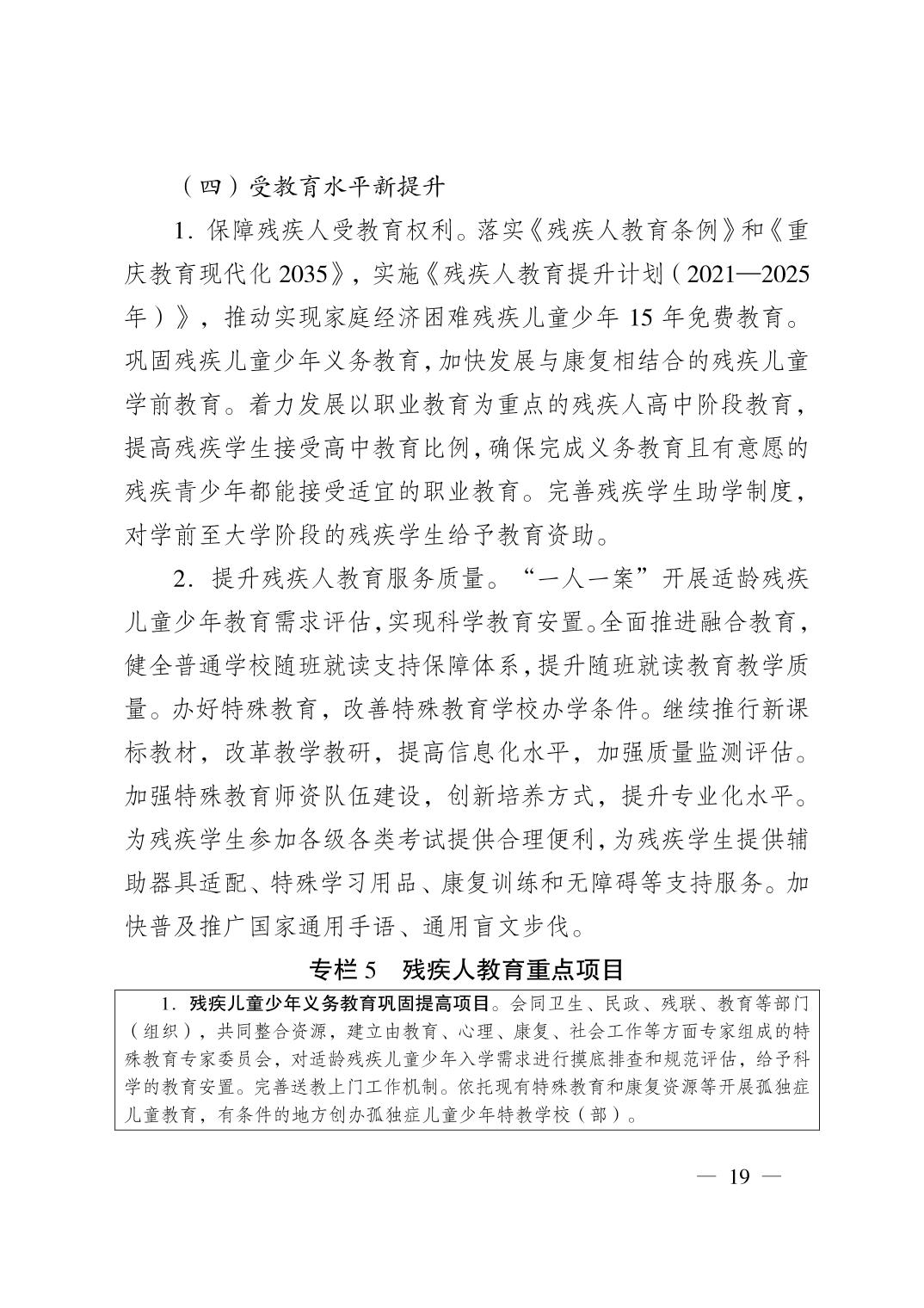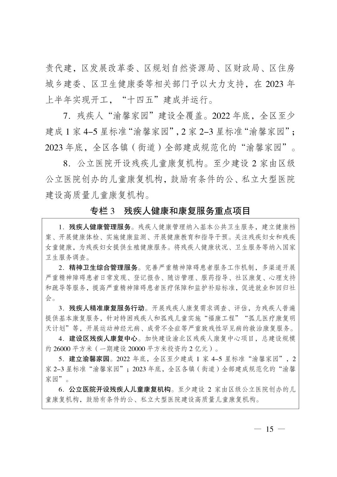 重慶市渝北區人民政府關于印發《重慶市渝北區“十四五”殘疾人保障和發展規劃(2021—2025年)》的通知