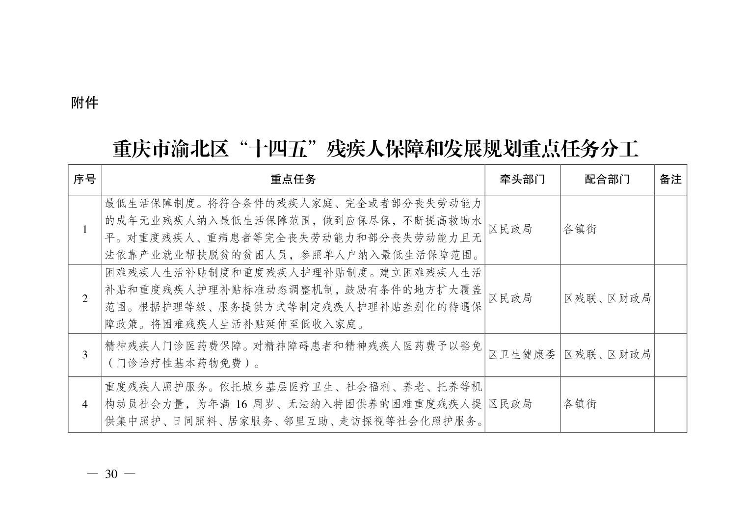 關于印發《重慶市渝北區“十四五”殘疾人保障和發展規劃(2021—2025年)》