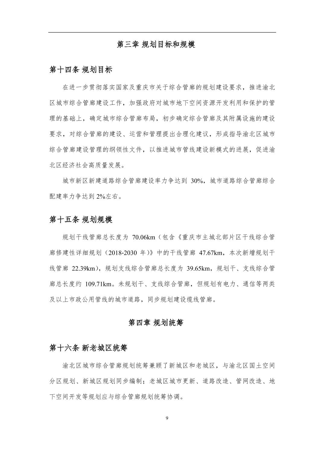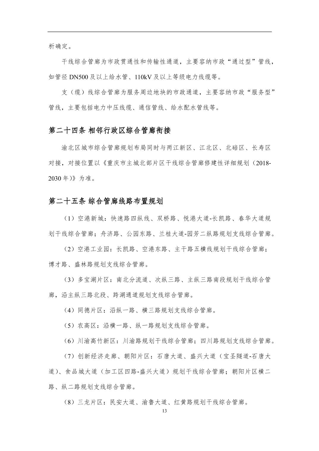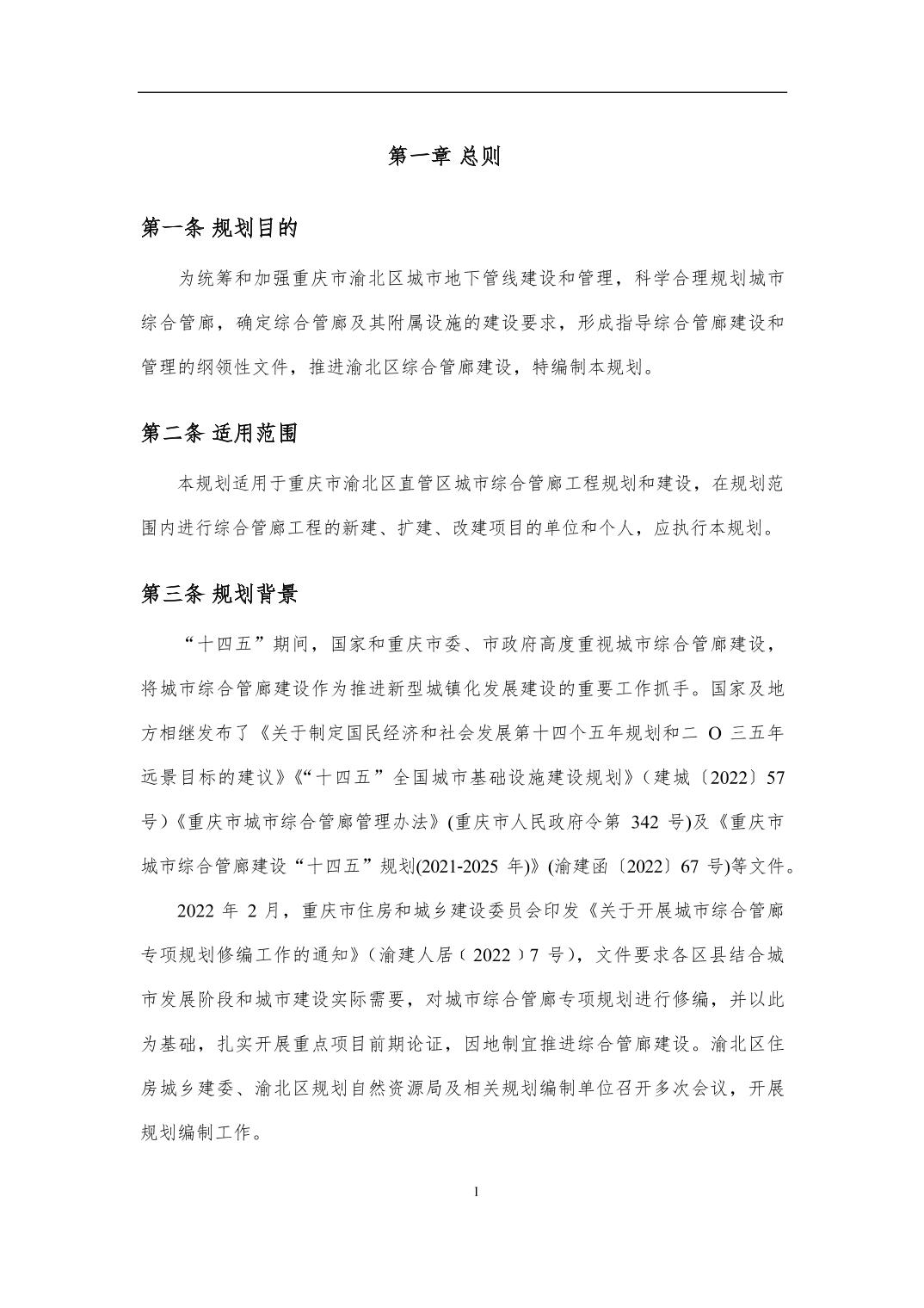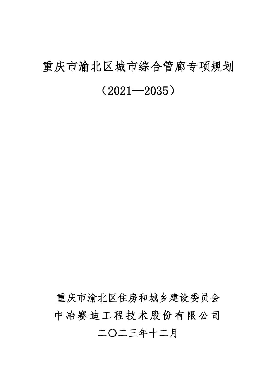 重慶市渝北區人民政府辦公室關于印發《重慶市渝北區城市綜合管廊專項規劃(2021-2035)》的通知