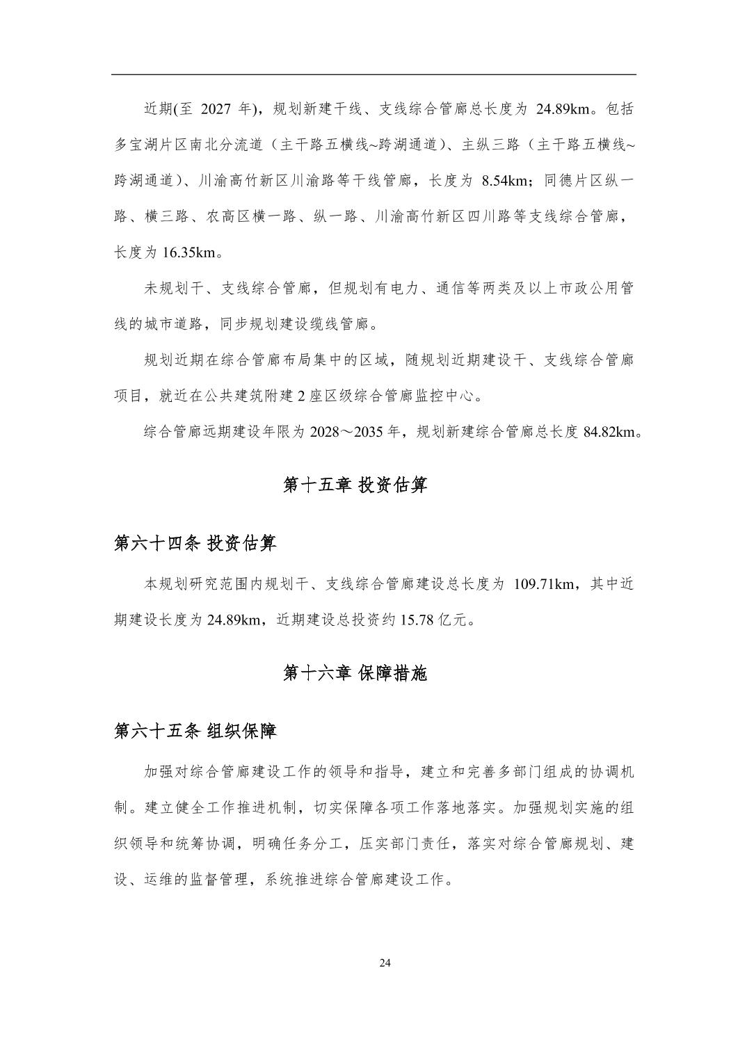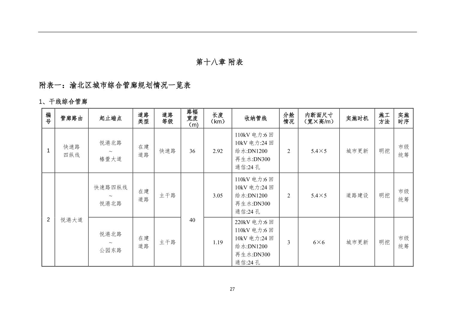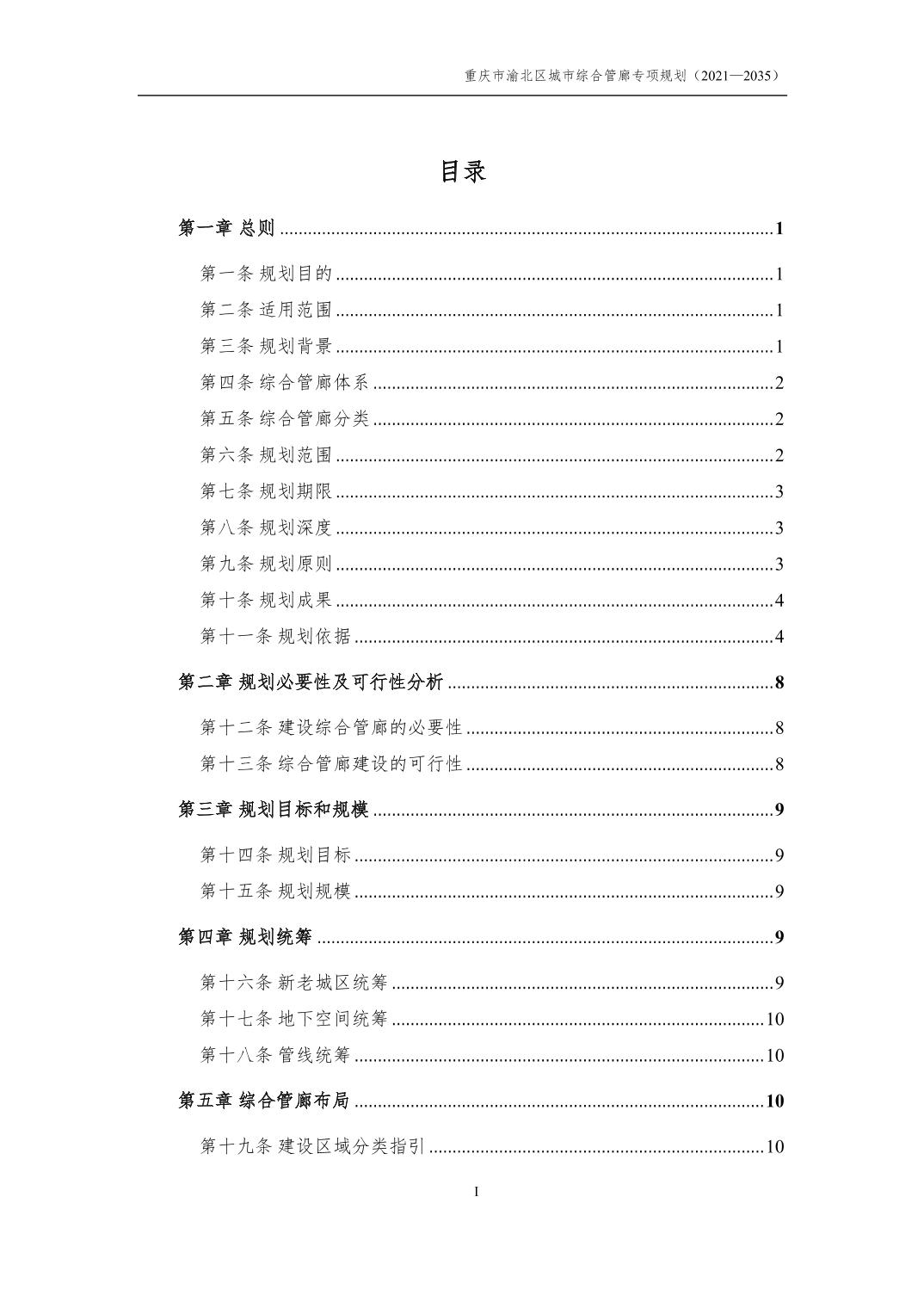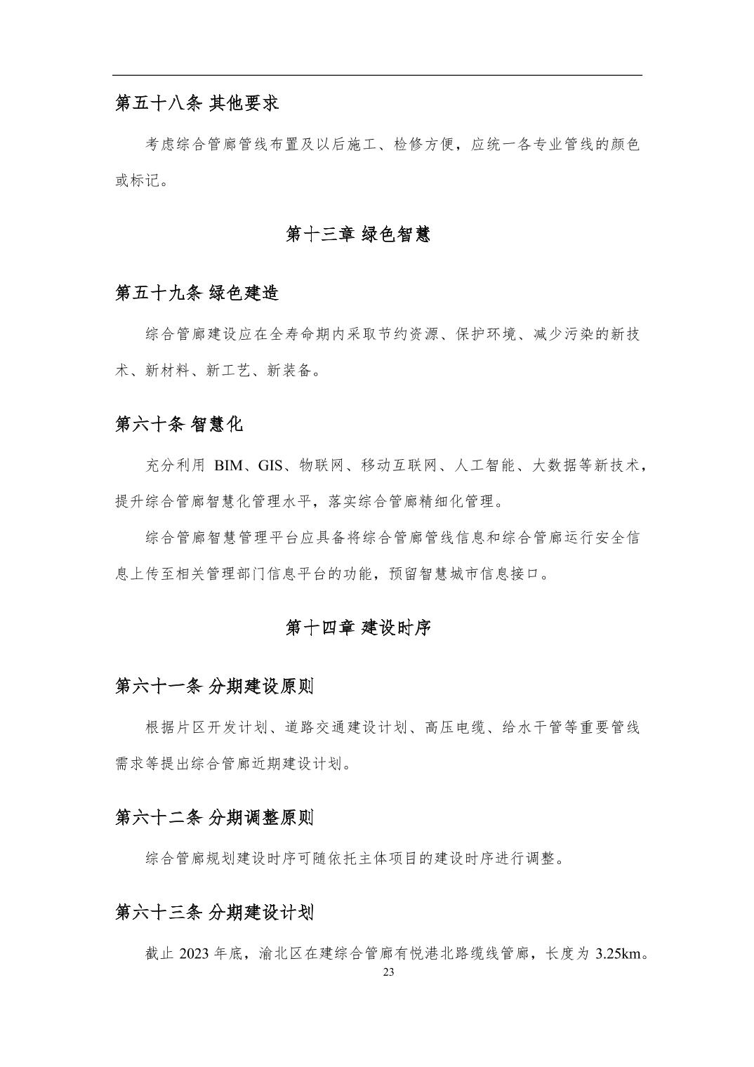 重慶市渝北區人民政府辦公室關于印發《重慶市渝北區城市綜合管廊專項規劃(2021-2035)》的通知