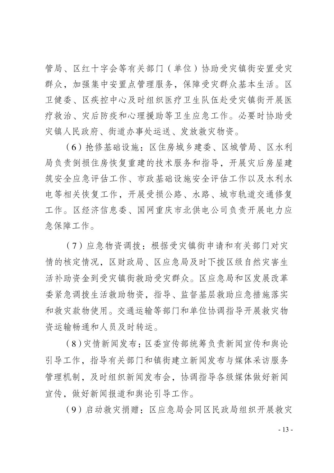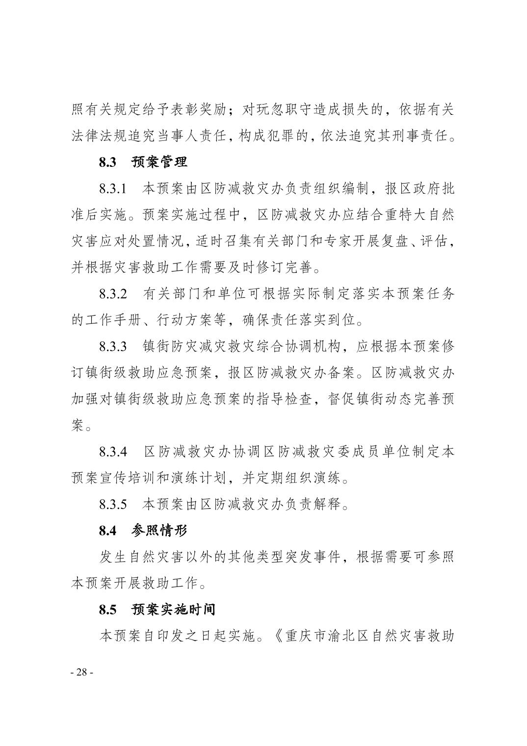經商有關單位,并報請區政府同意,現將《重慶市渝北區自然災害救助應急預案》印發給你們,請認真貫徹執行。