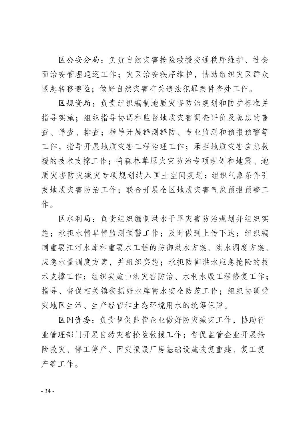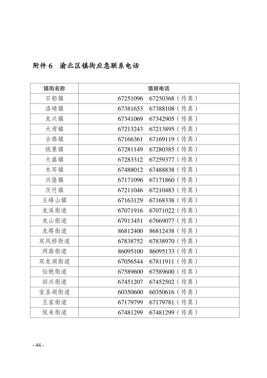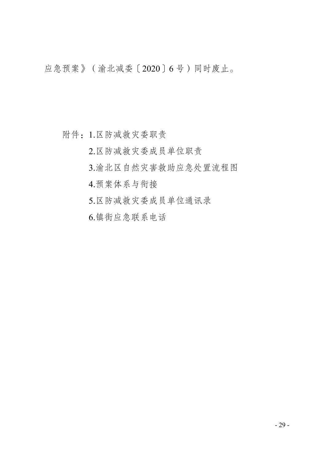 重慶市渝北區人民政府辦公室關于印發重慶市渝北區自然災害救助應急預案的通知
