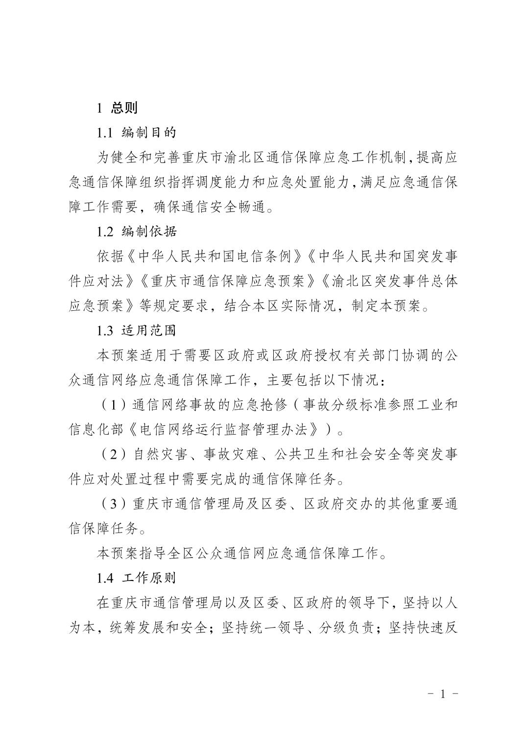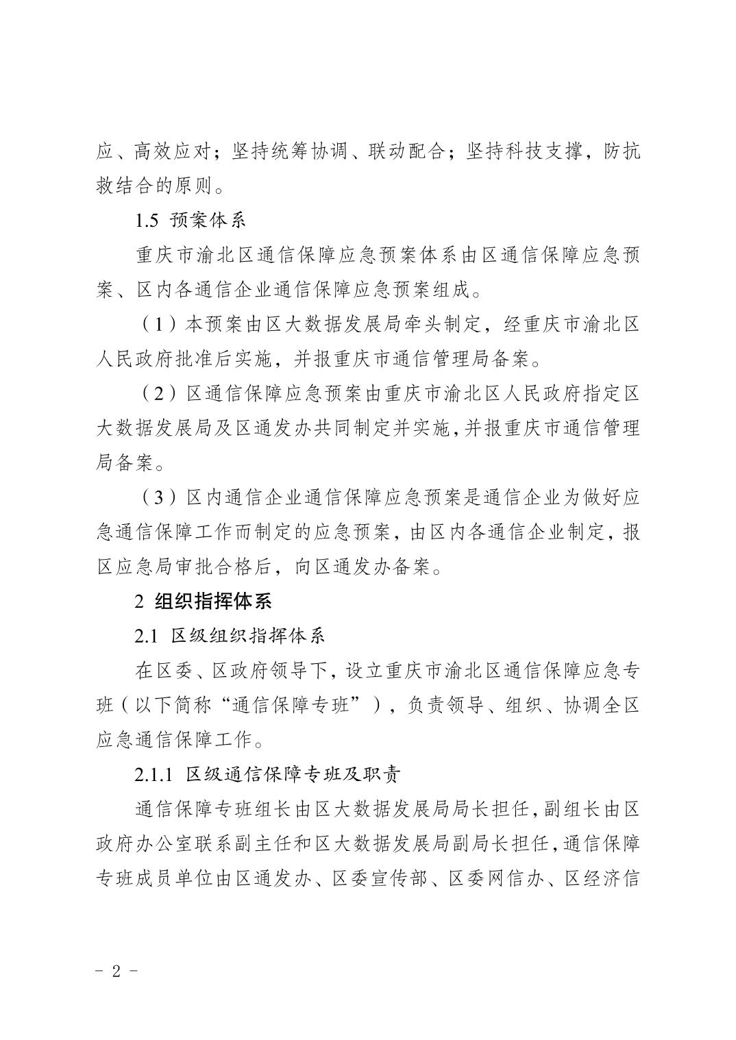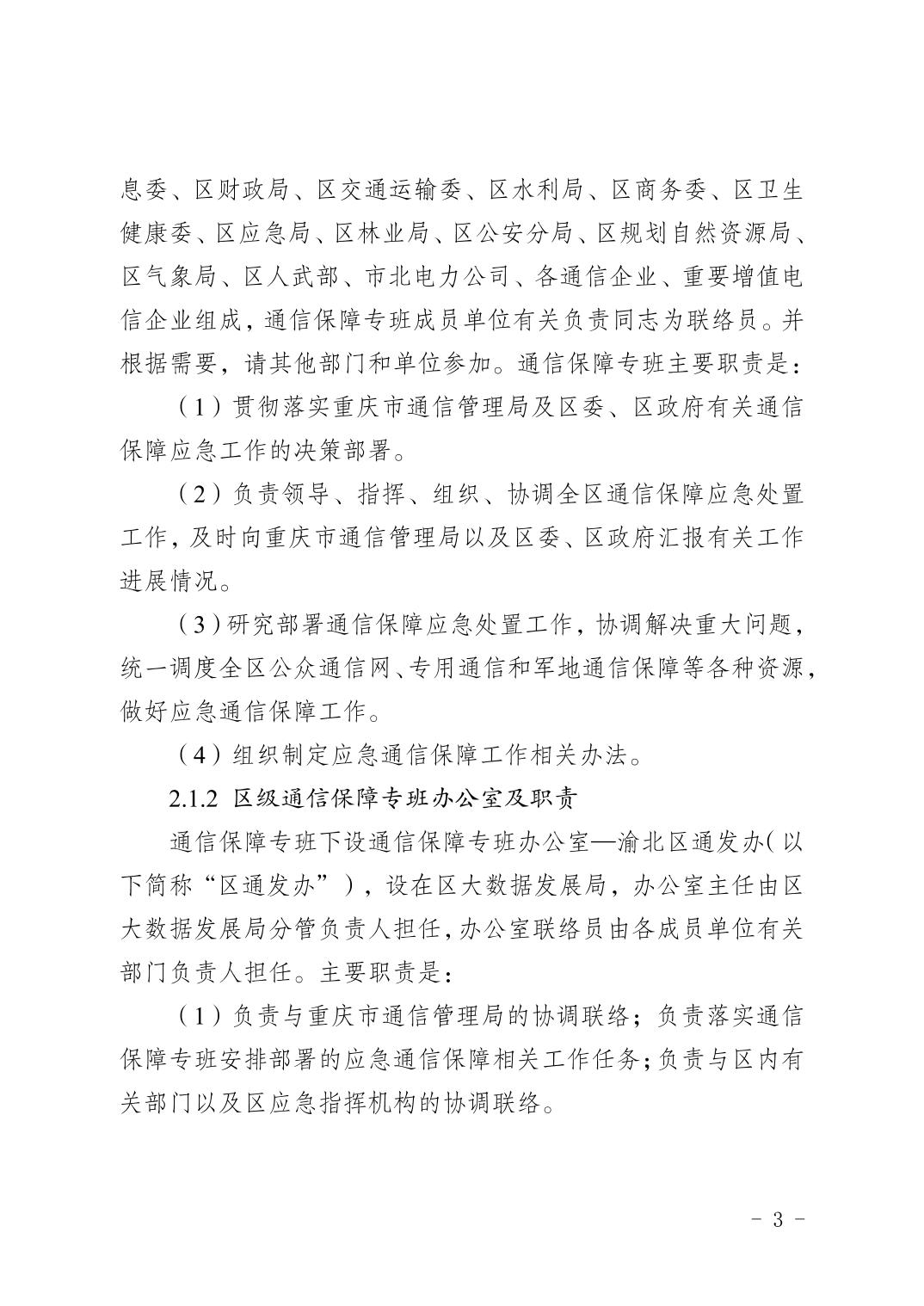 重慶市渝北區人民政府辦公室關于印發《重慶市渝北區通信保障應急預案》的通知
