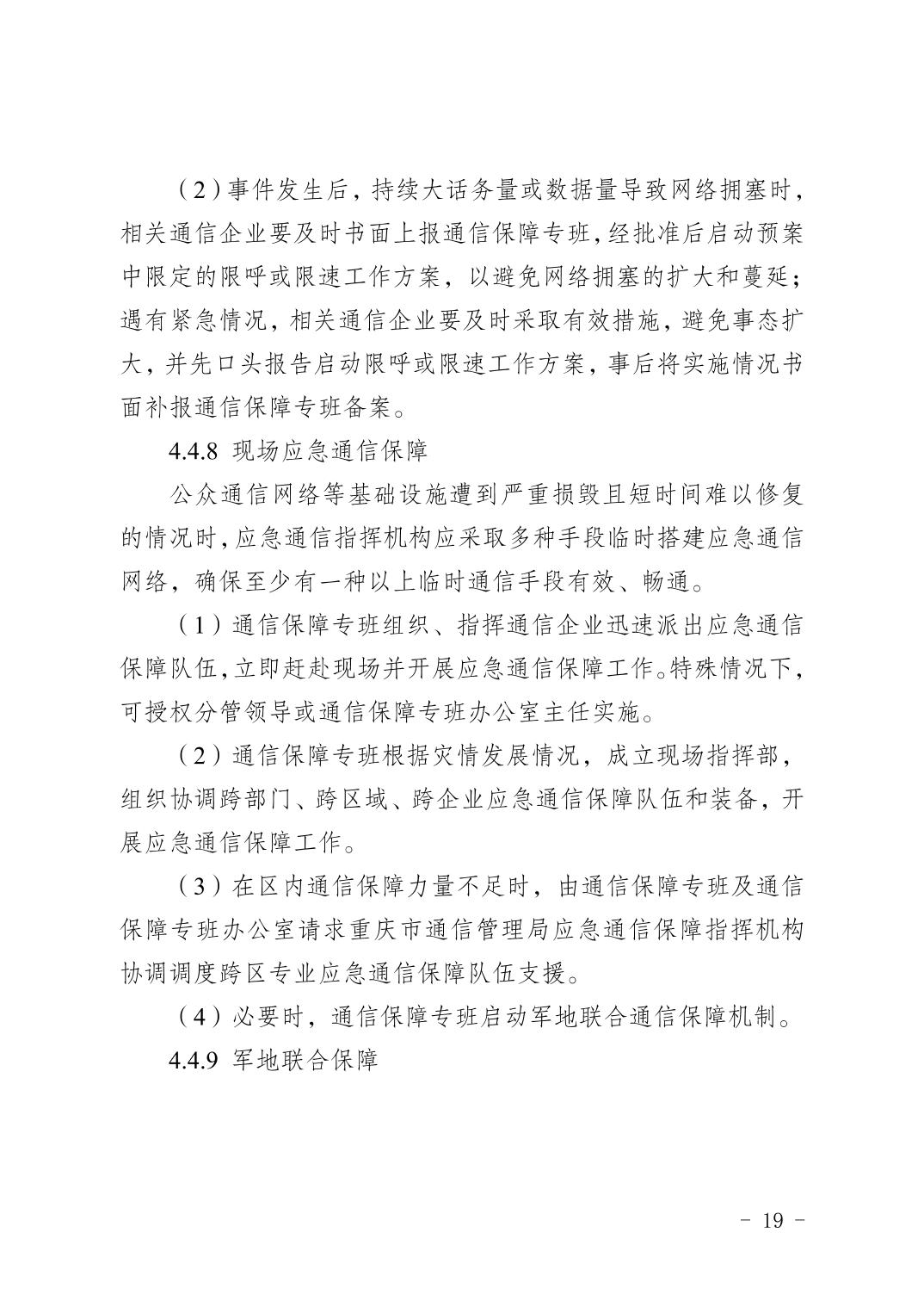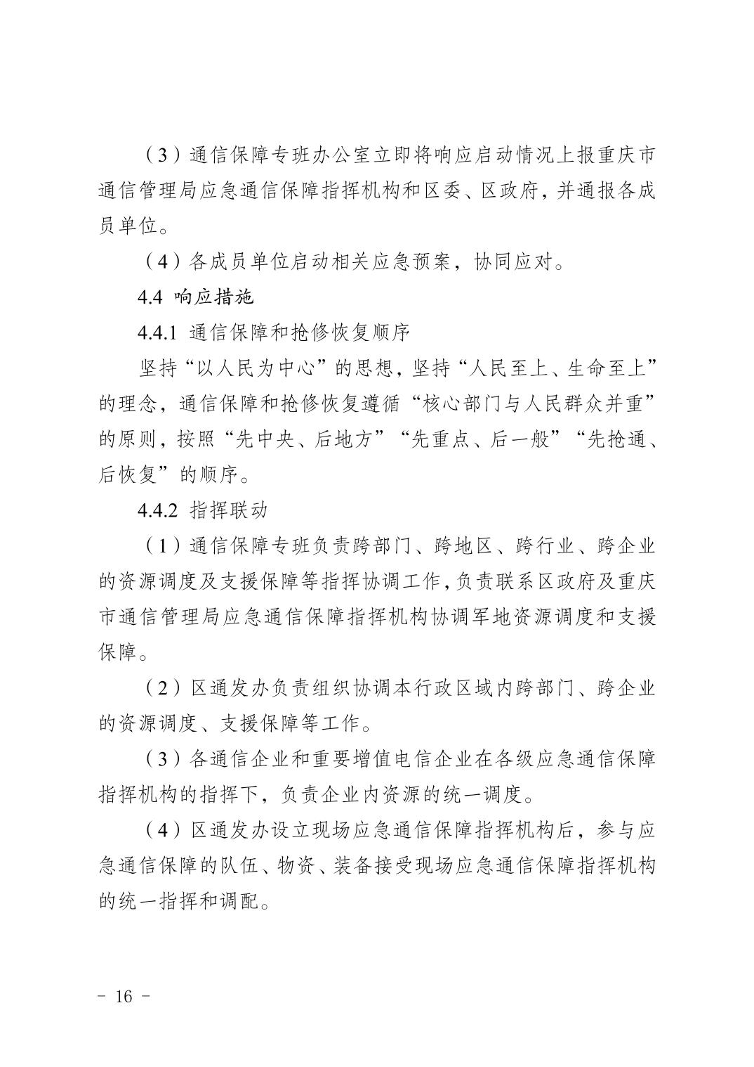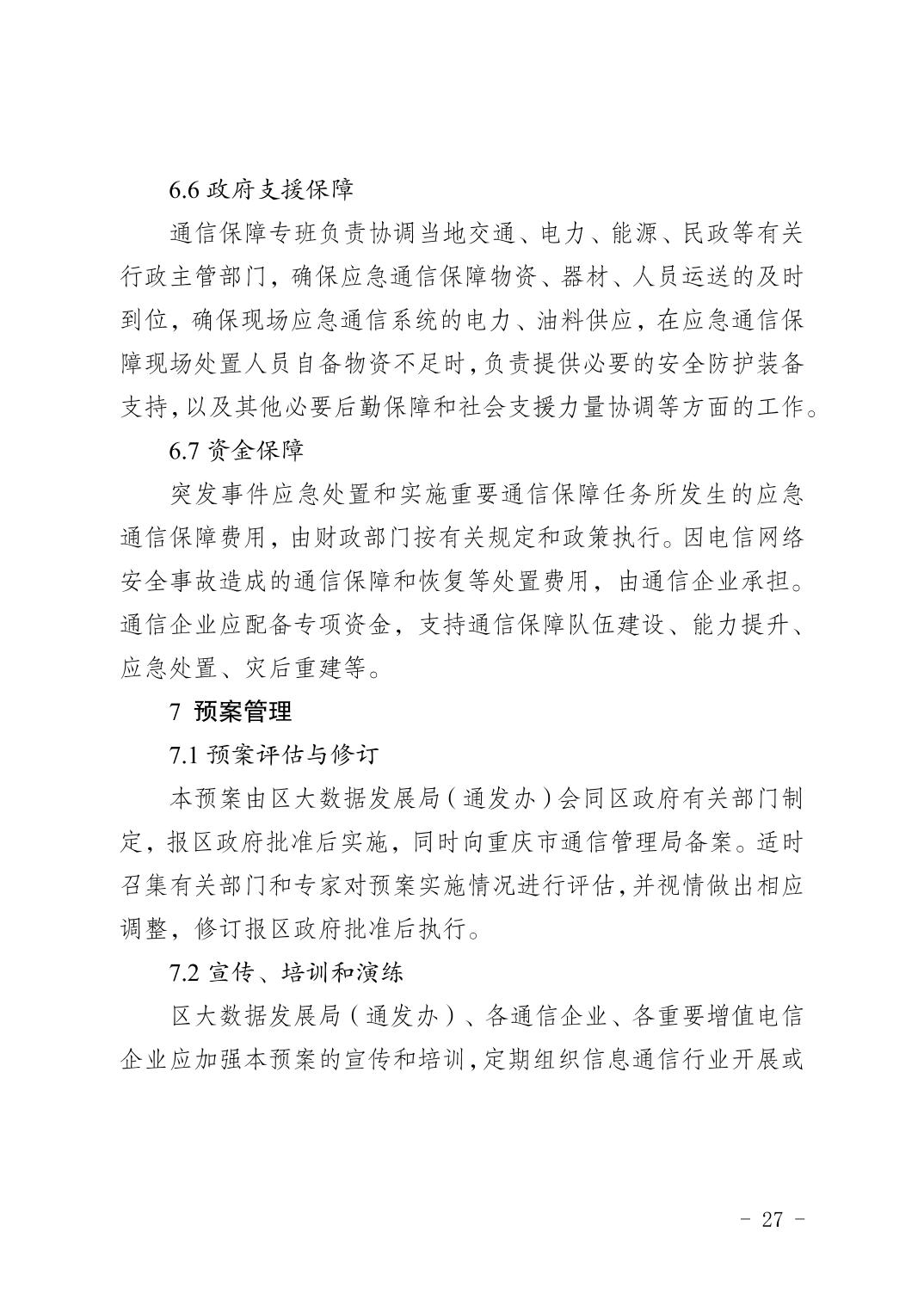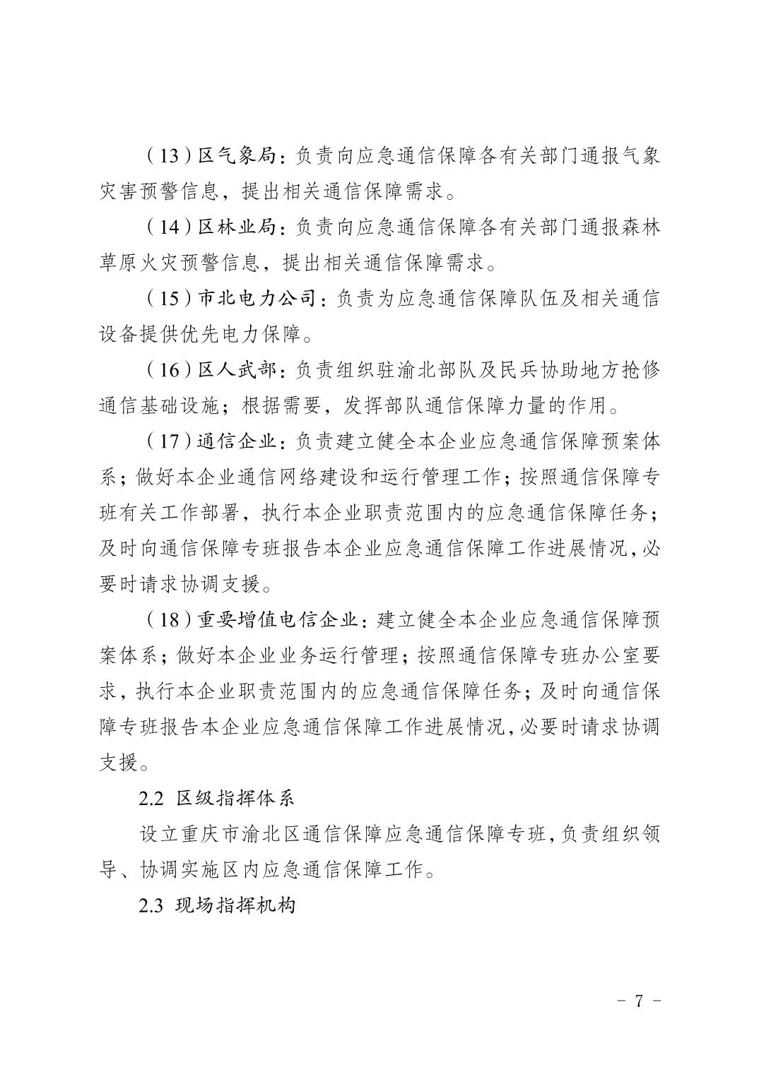 關于印發《重慶市渝北區通信保障應急預案》的