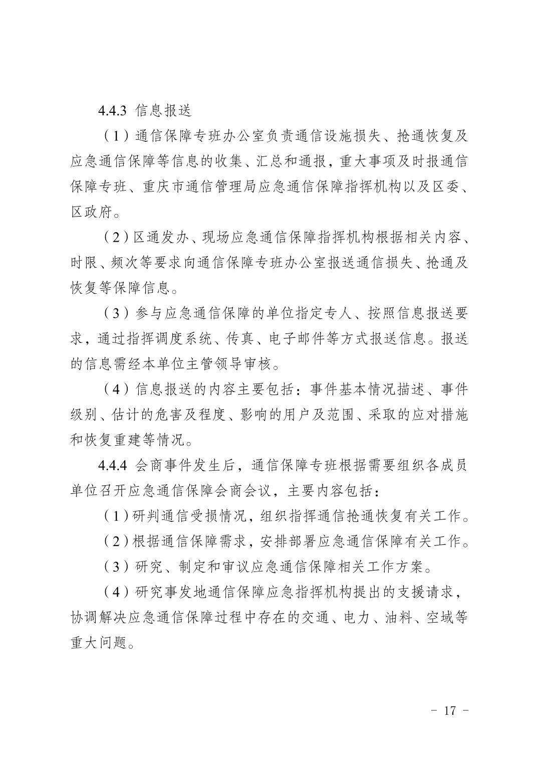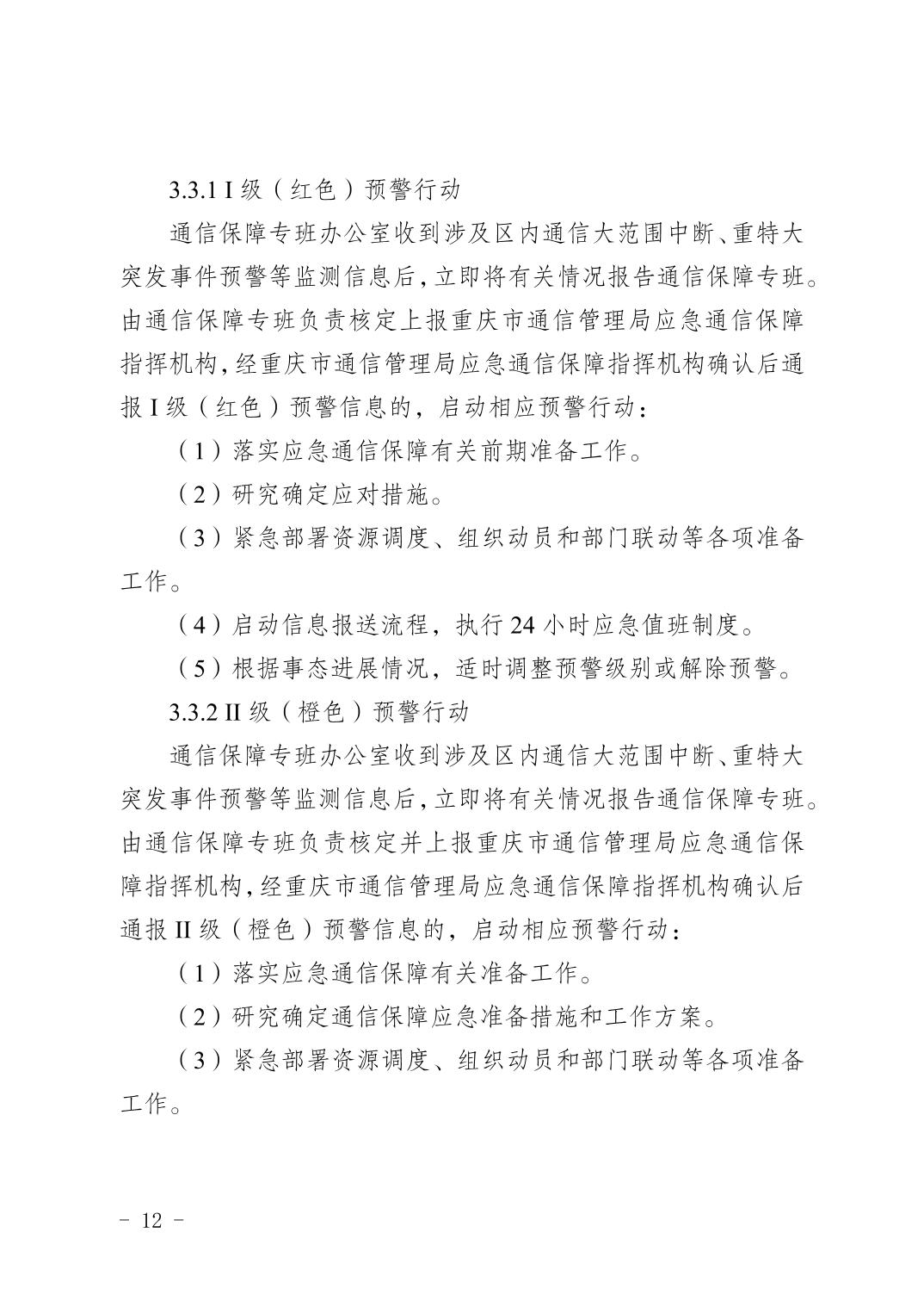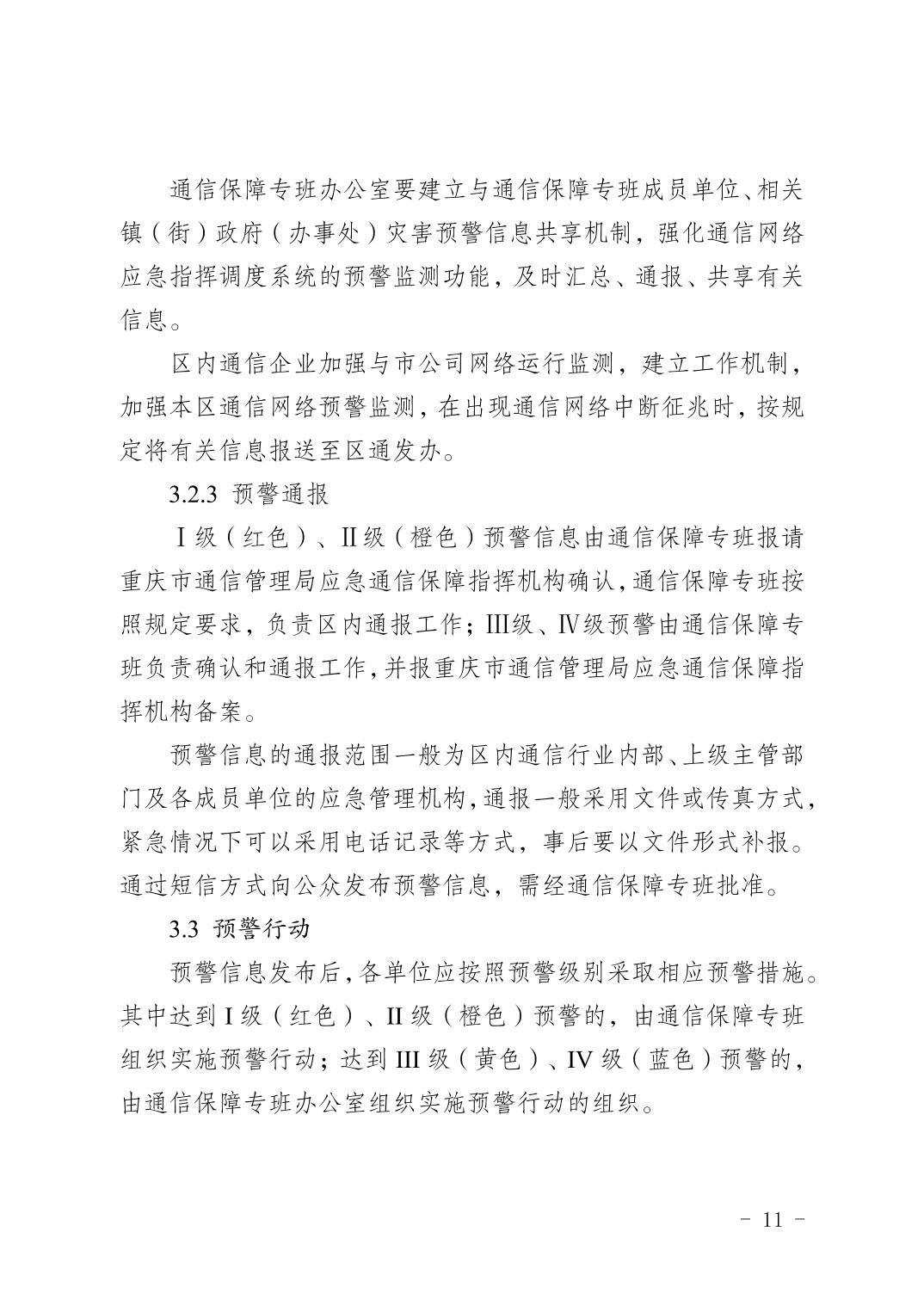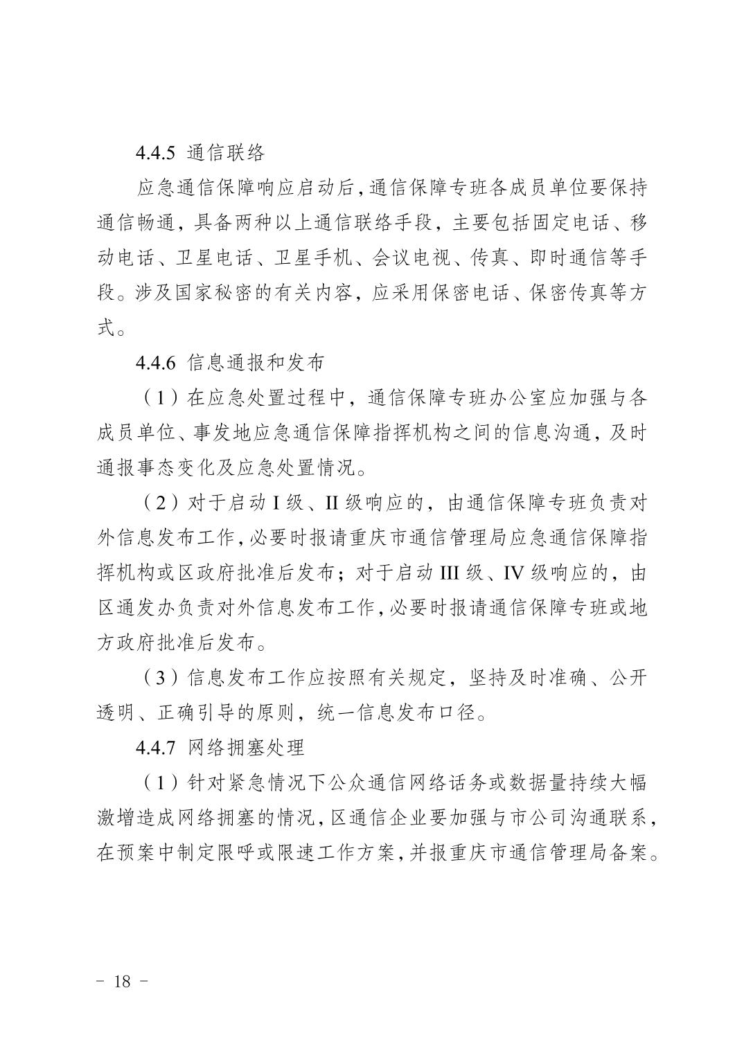 關于印發《重慶市渝北區通信保障應急預案》的