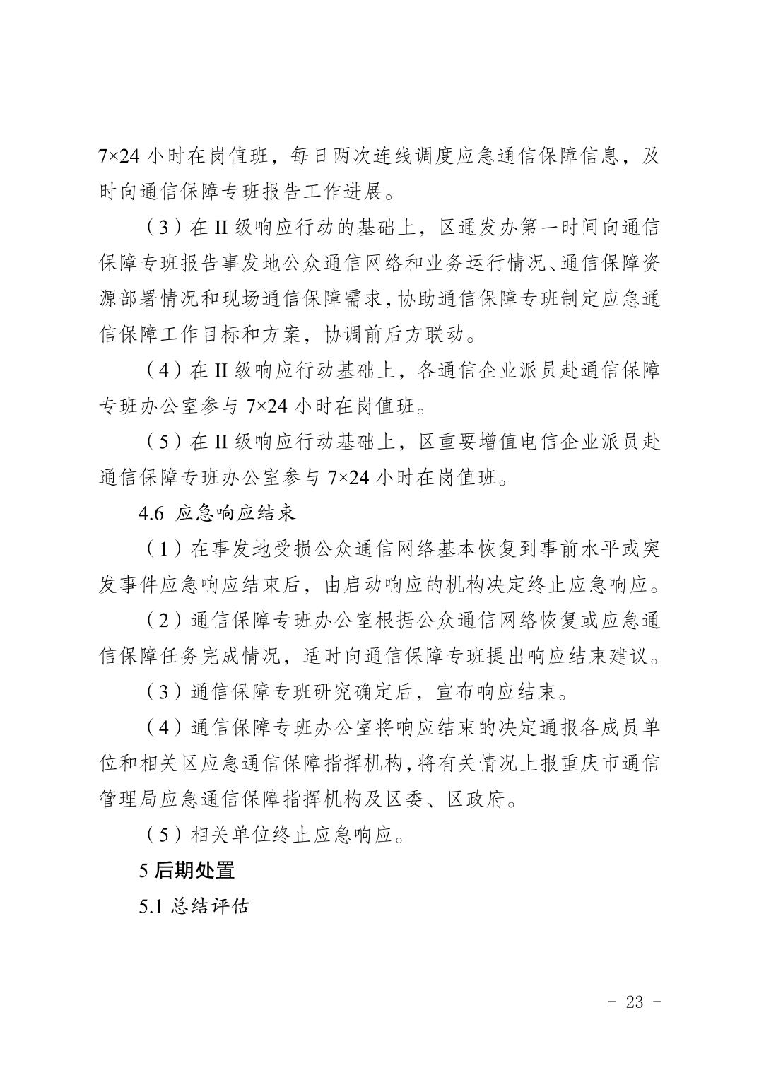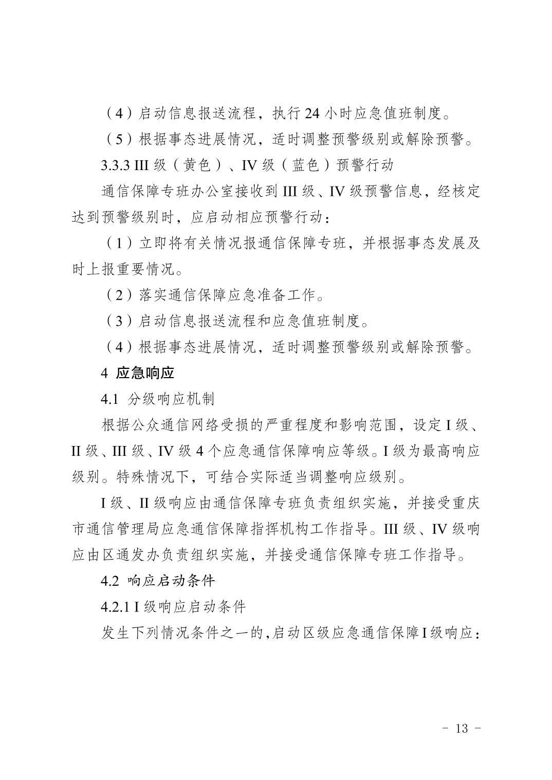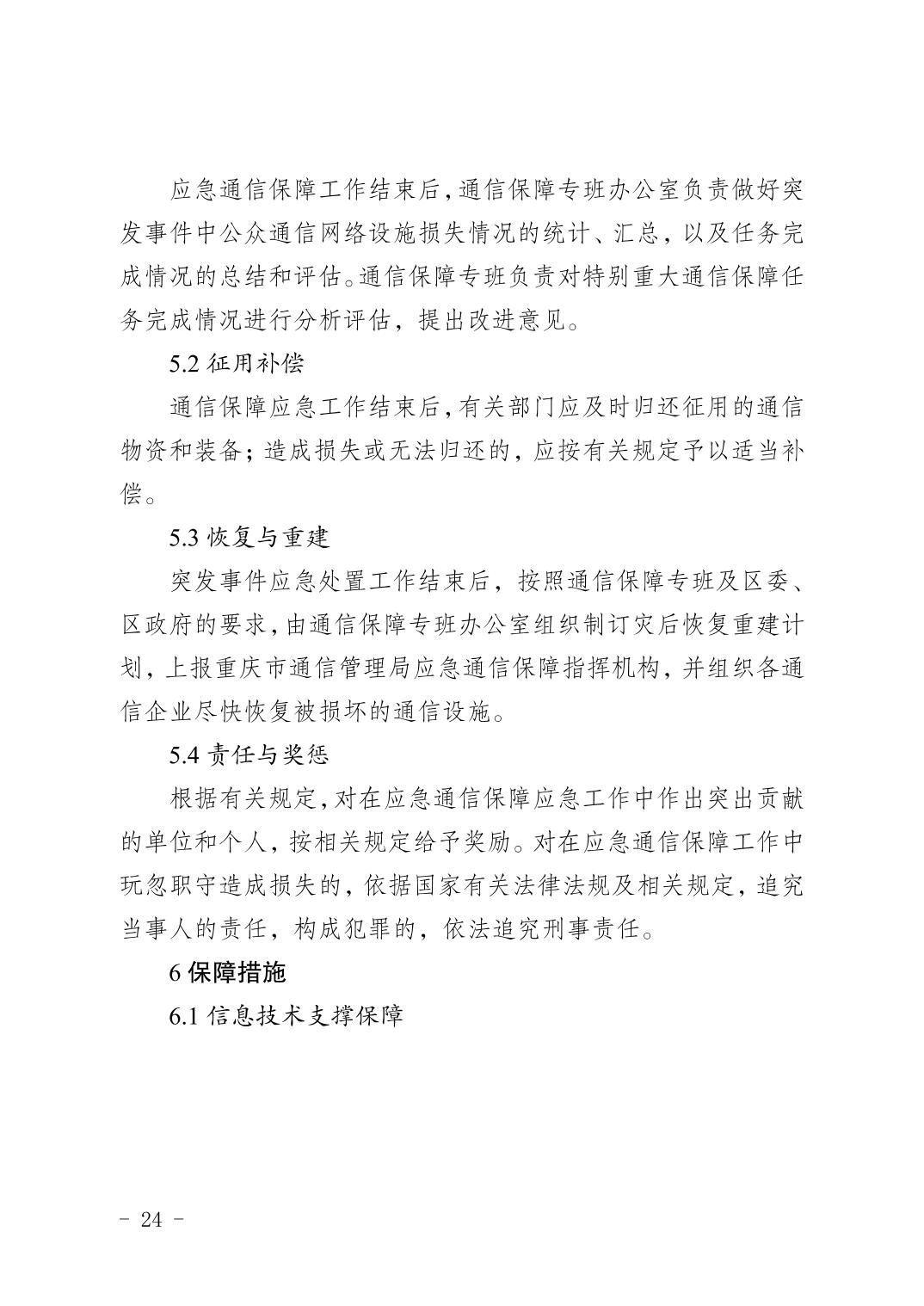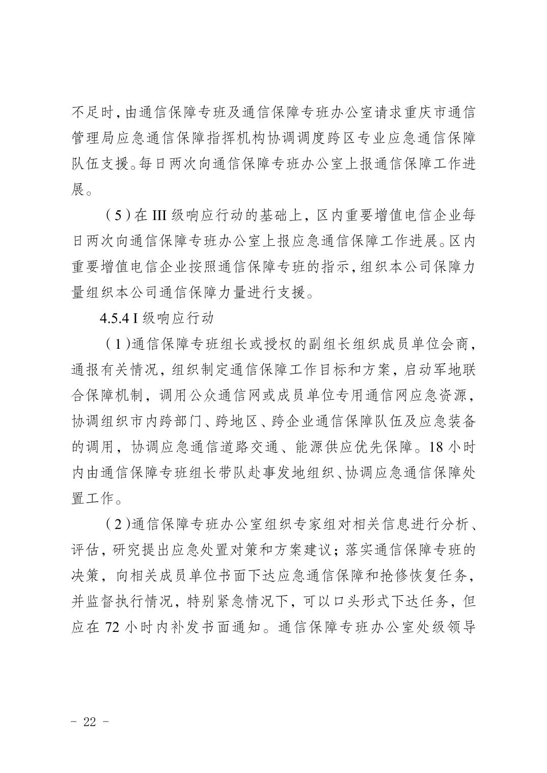 關于印發《重慶市渝北區通信保障應急預案》的